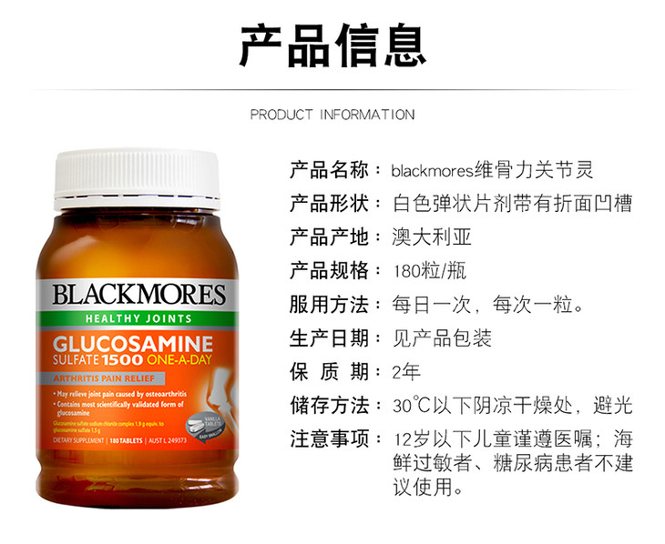 【保税仓】【精品推荐】澳大利亚Blackmores澳佳宝维骨力氨基葡萄糖关节灵 180粒 商品图0