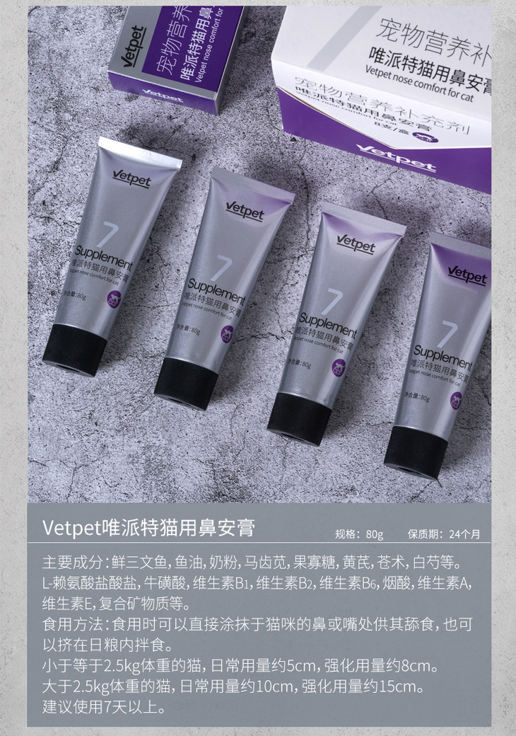【一般贸易】Vetpet唯派特猫用鼻安膏80g 宠物猫咪保健品