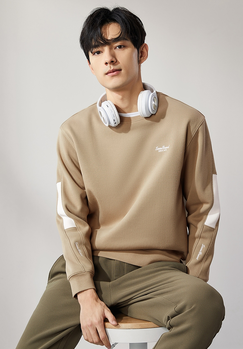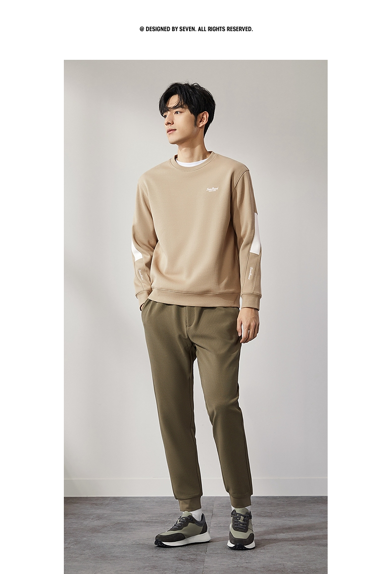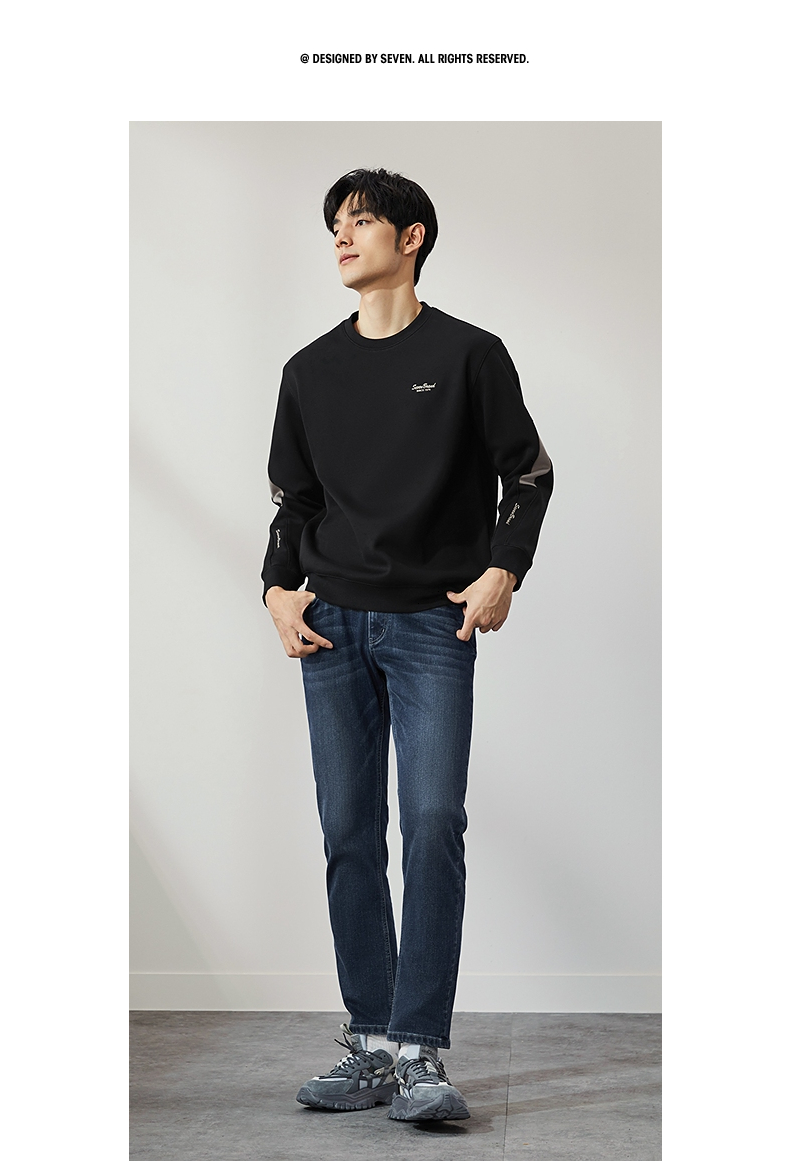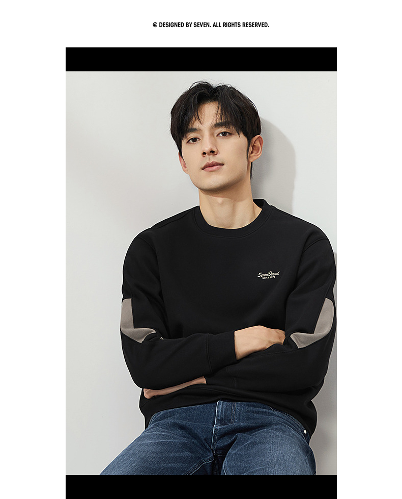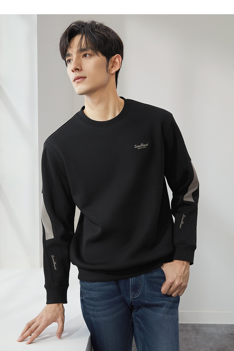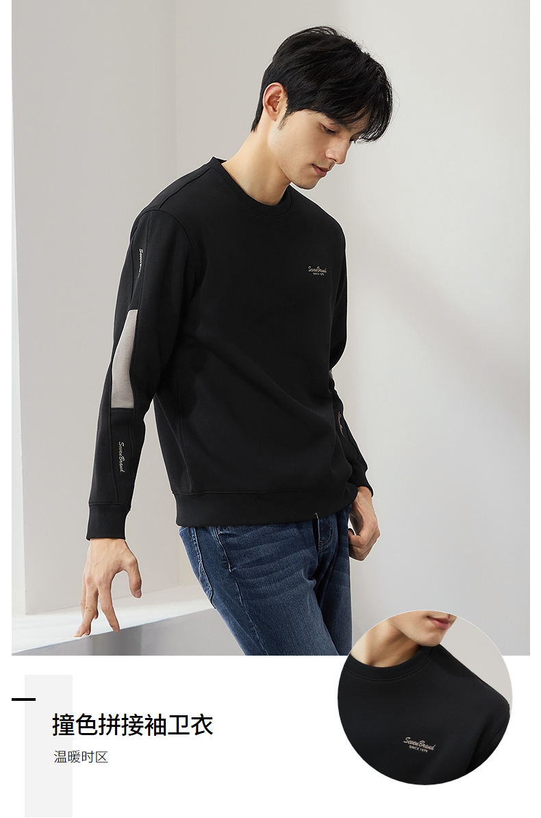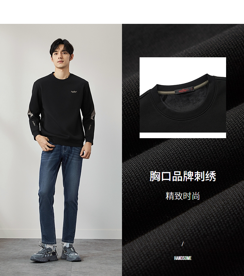 【抗静电】柒牌男装圆领卫衣男2024秋冬厚款时尚休闲加绒保暖上衣 127W70580
