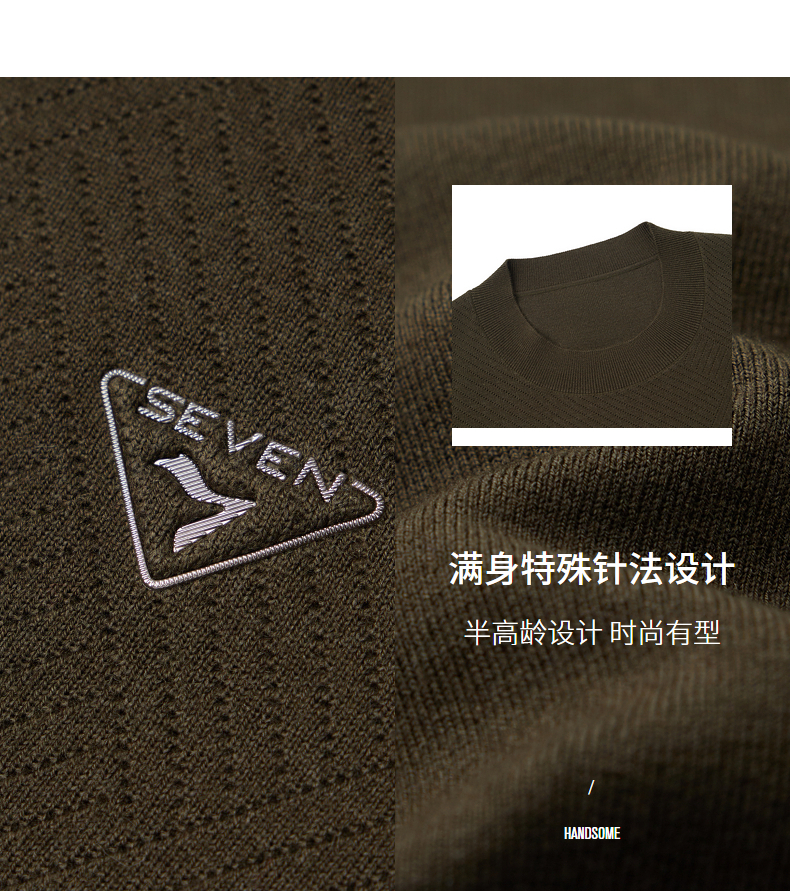 柒牌男装半高领毛衫男秋冬2024新款中青年时尚百搭休闲打底针织衫 127Y70140