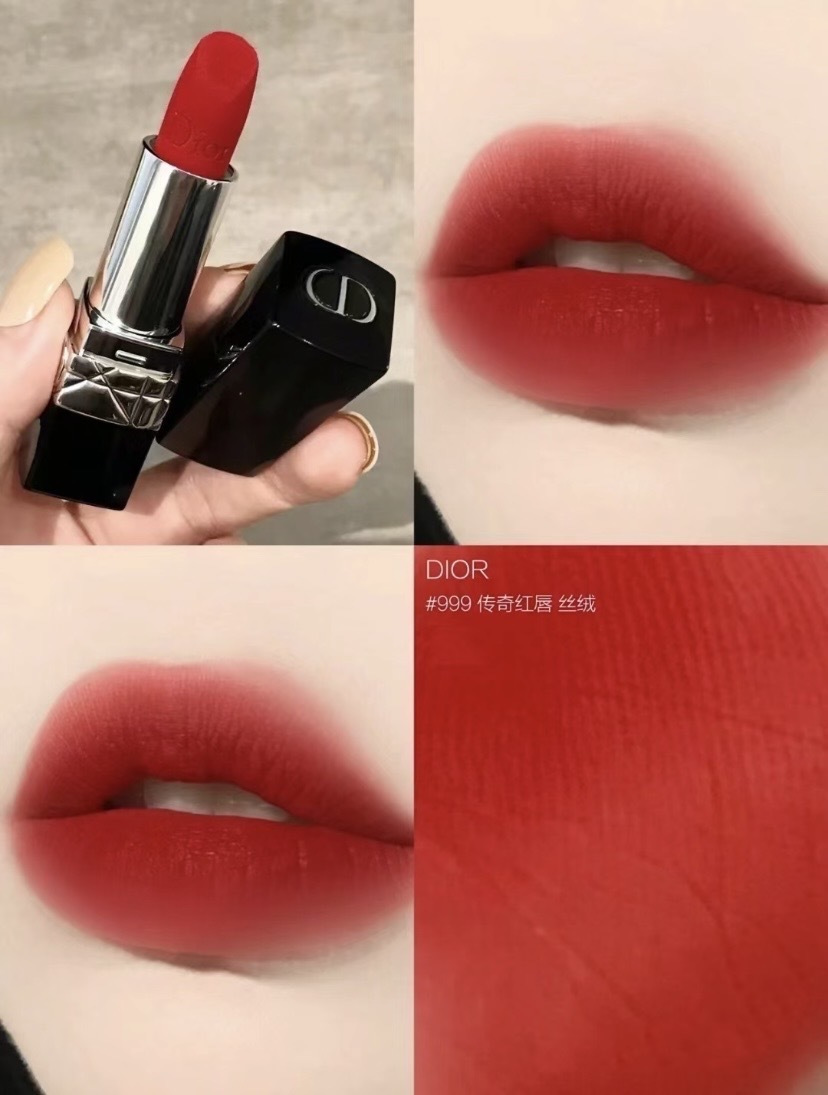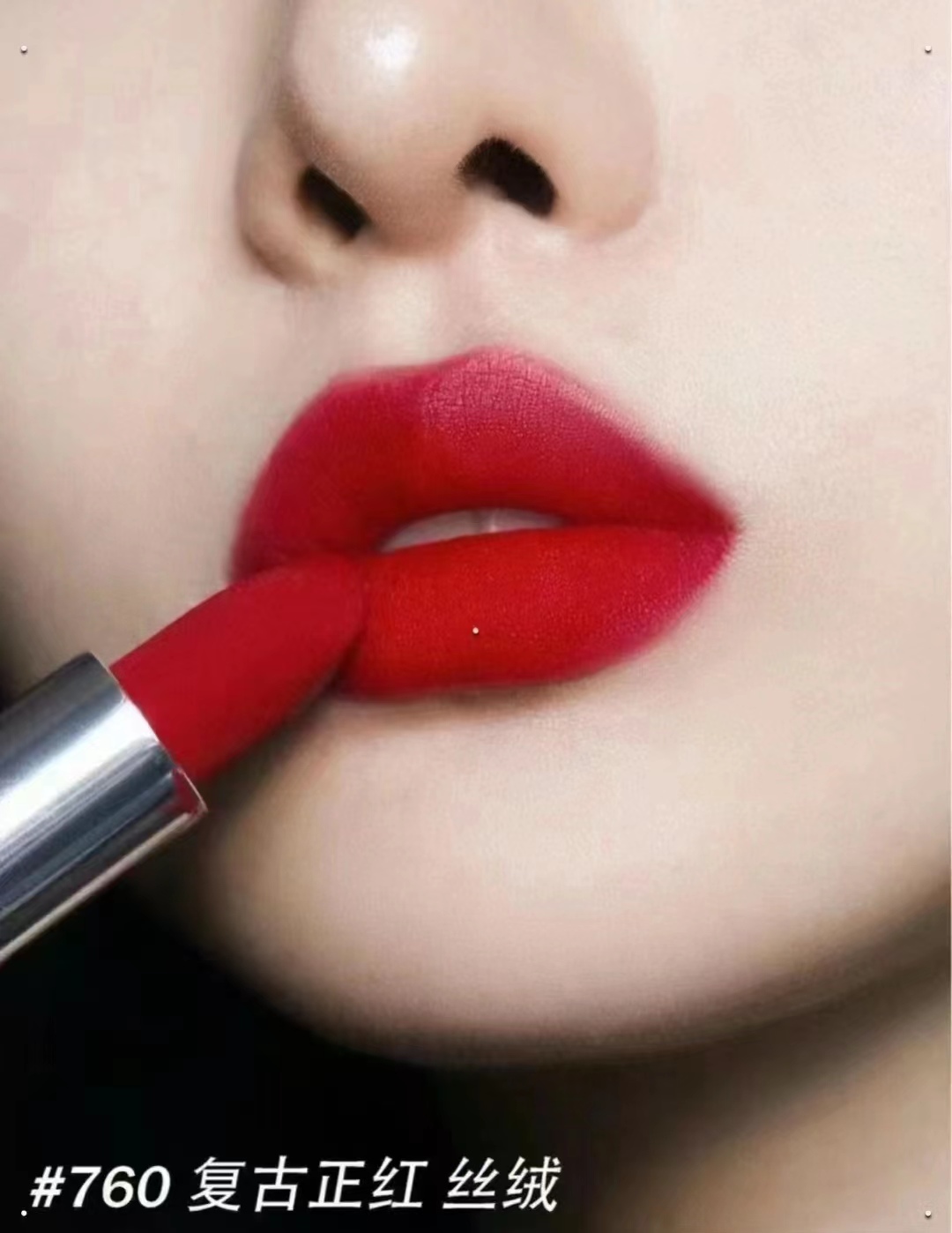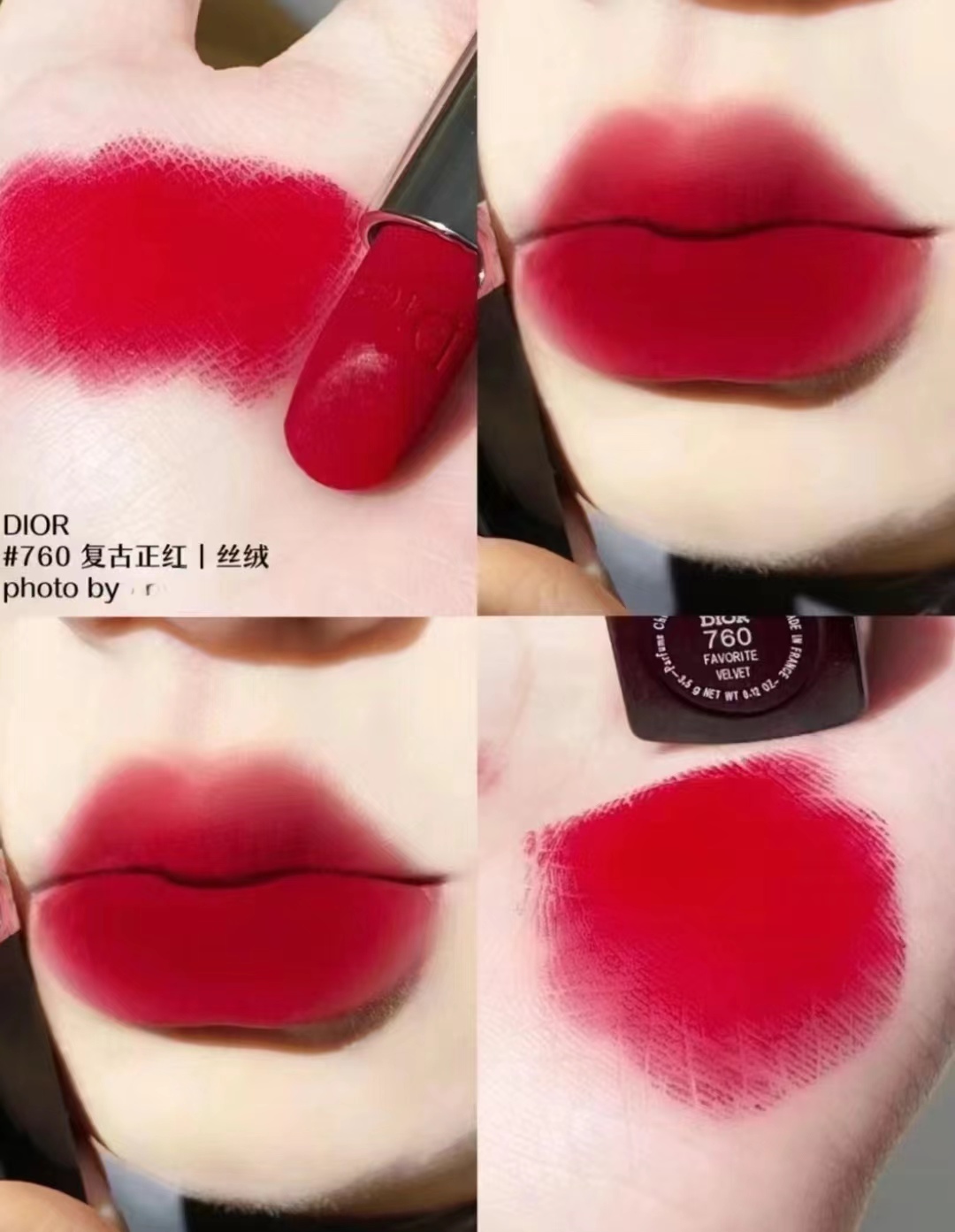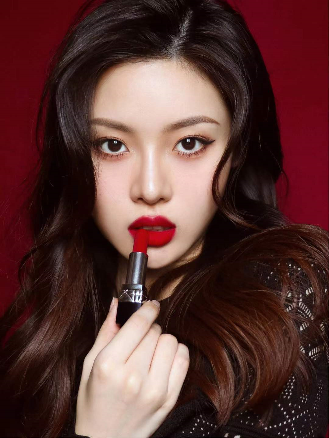 迪奥传统的大红配上丝绒质地,简直就是如鱼得水,涂完以后艳丽但不俗气!