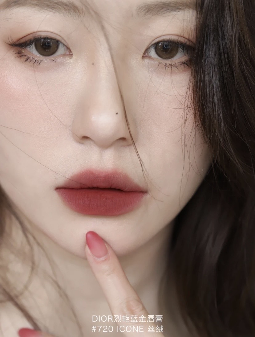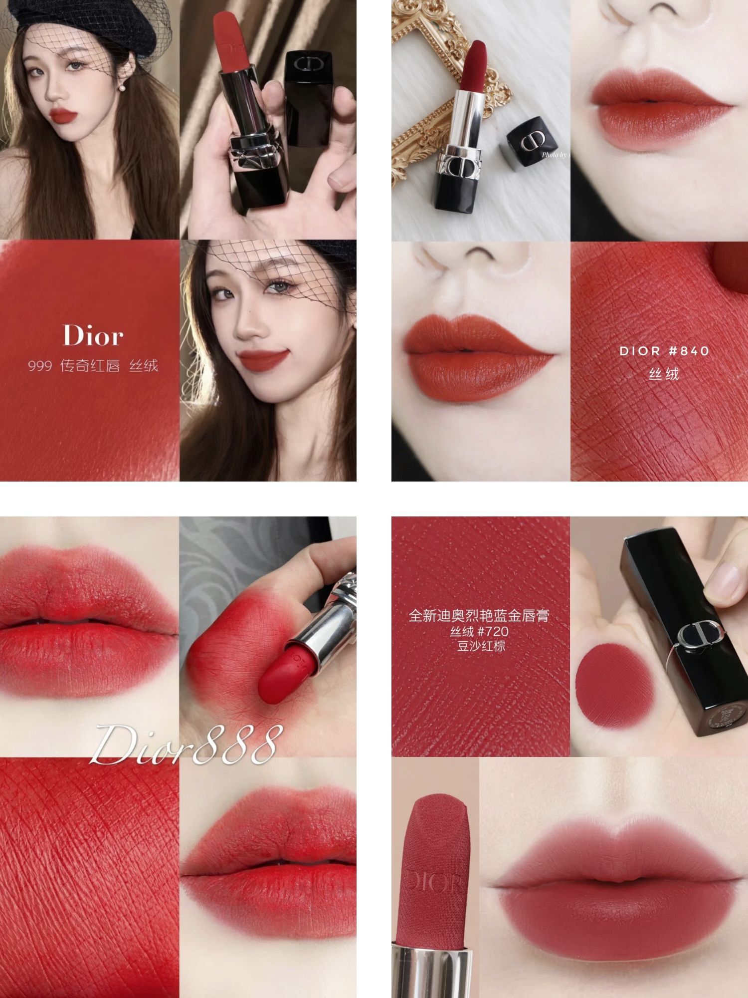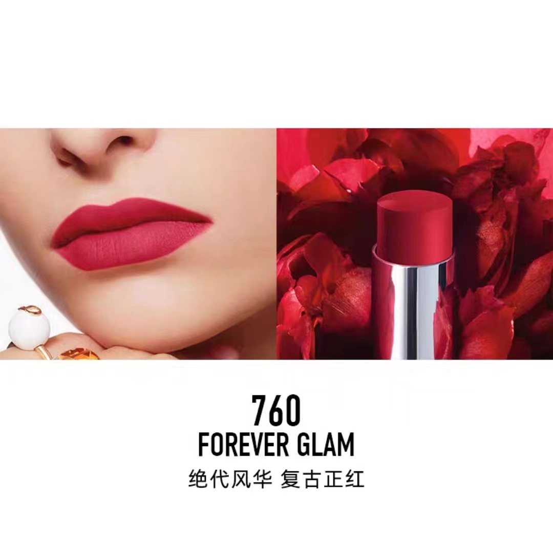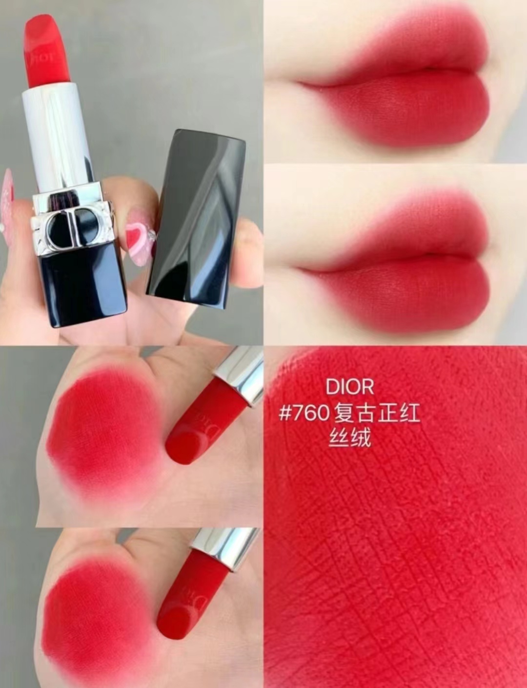 迪奥传统的大红配上丝绒质地,简直就是如鱼得水,涂完以后艳丽但不俗气!