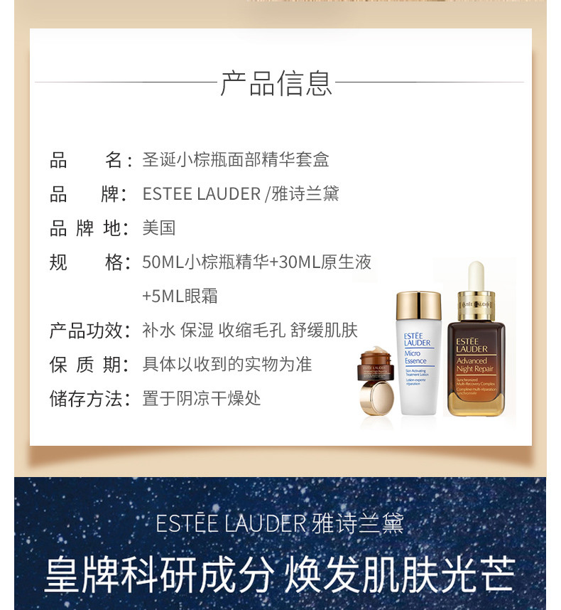 【圣诞限定】ESTEE LAUDER /雅诗兰黛 圣诞小棕瓶面部精华套盒 50ML小棕瓶精华+30ML原生液+5ML眼霜