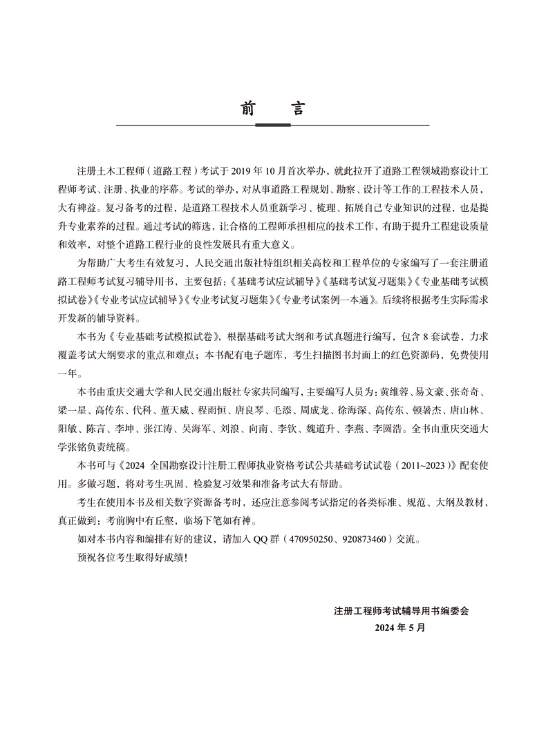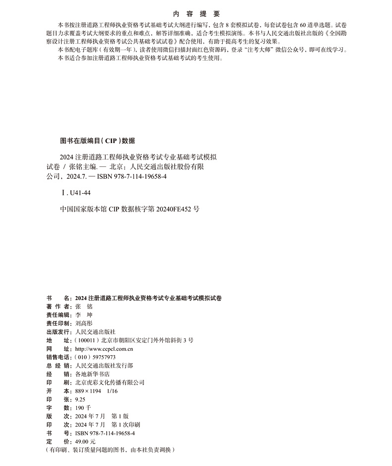 2024注册道路工程师执业资格考试专业基础考试模拟试卷 张铭 人民交通出版社旗舰店