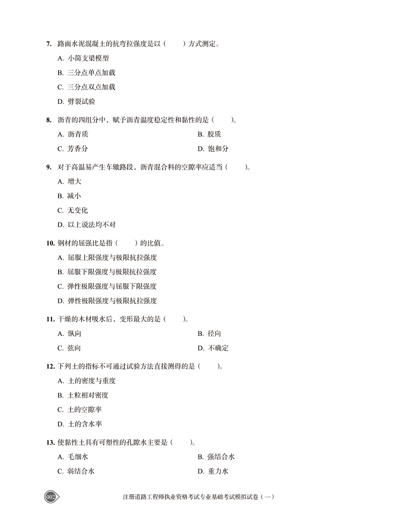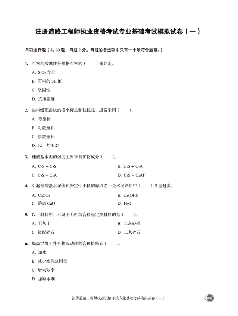 书名:2024注册道路工程师执业资格考试专业基础考试模拟试卷