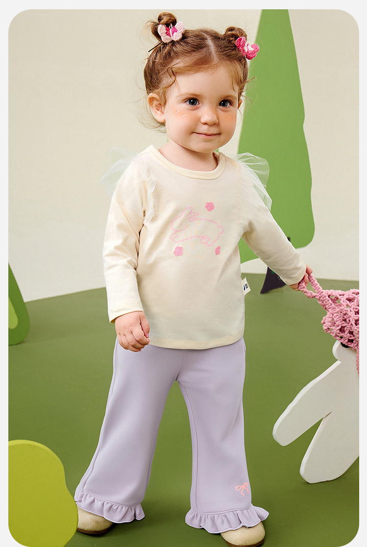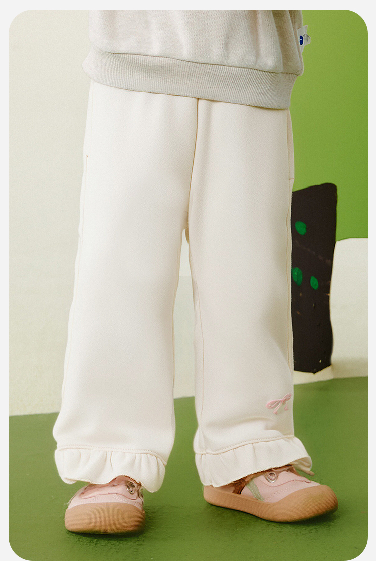 迷你巴拉女童裤子蝴蝶结直筒长裤荷叶边儿童长裤2025秋新品