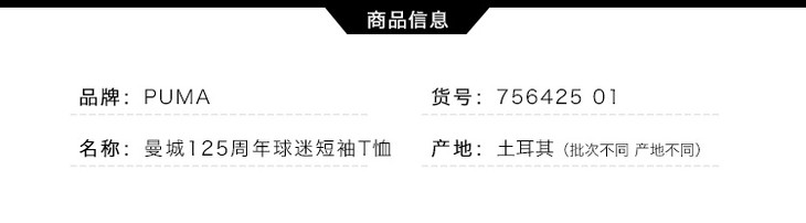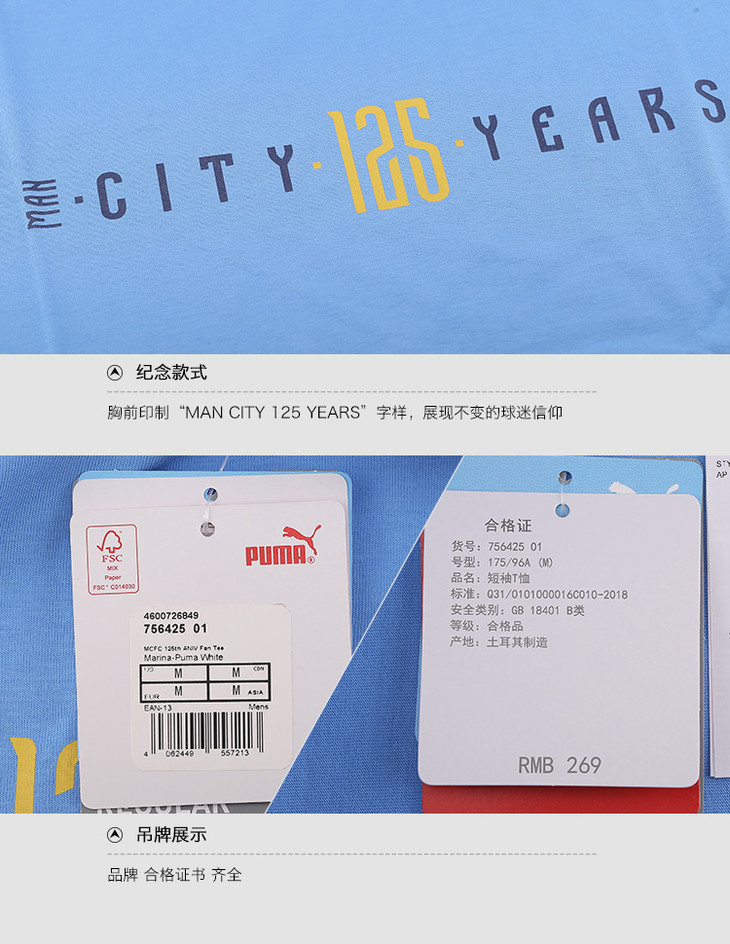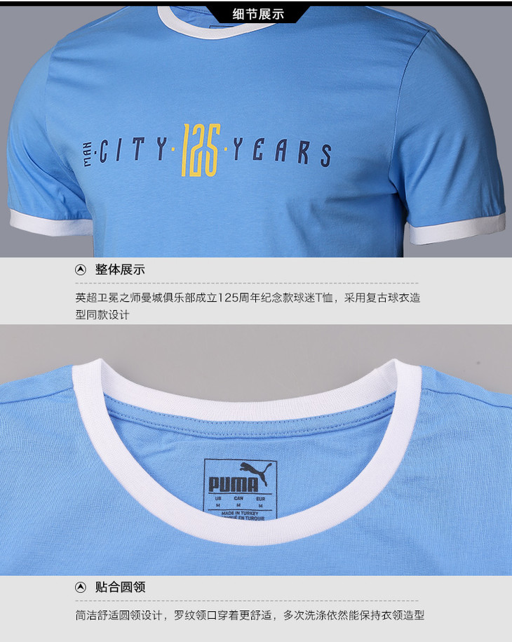 「125周年限定」PUMA/彪马 19-20赛季曼城125周年纪念版球迷T恤756425