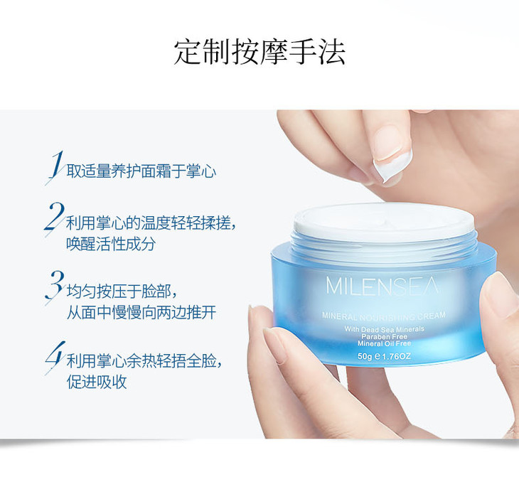 MILENSEA死海矿物养肤面霜50g 补水保湿女修紧致复改善敏感隔离霜7290112160515