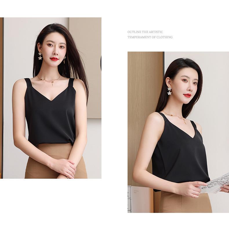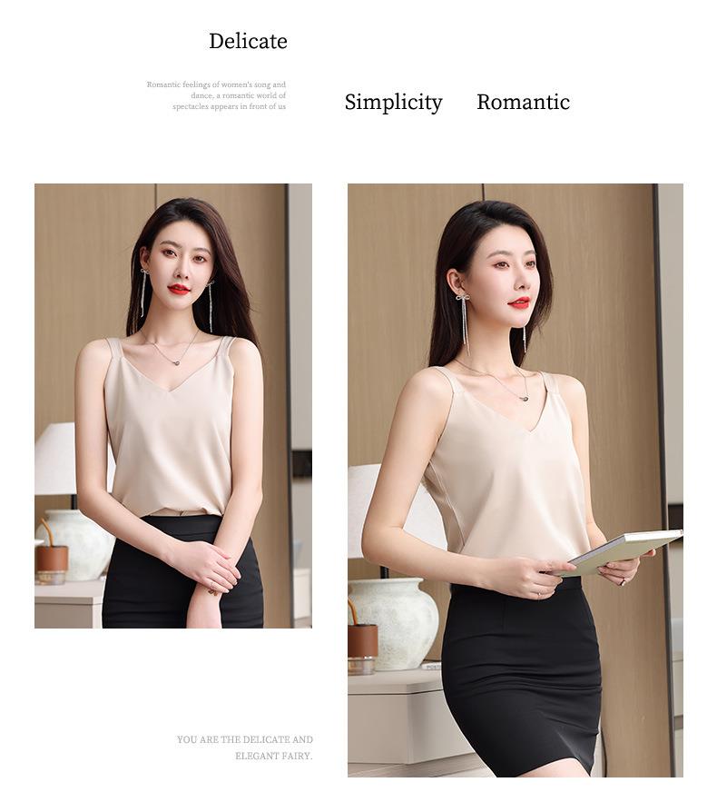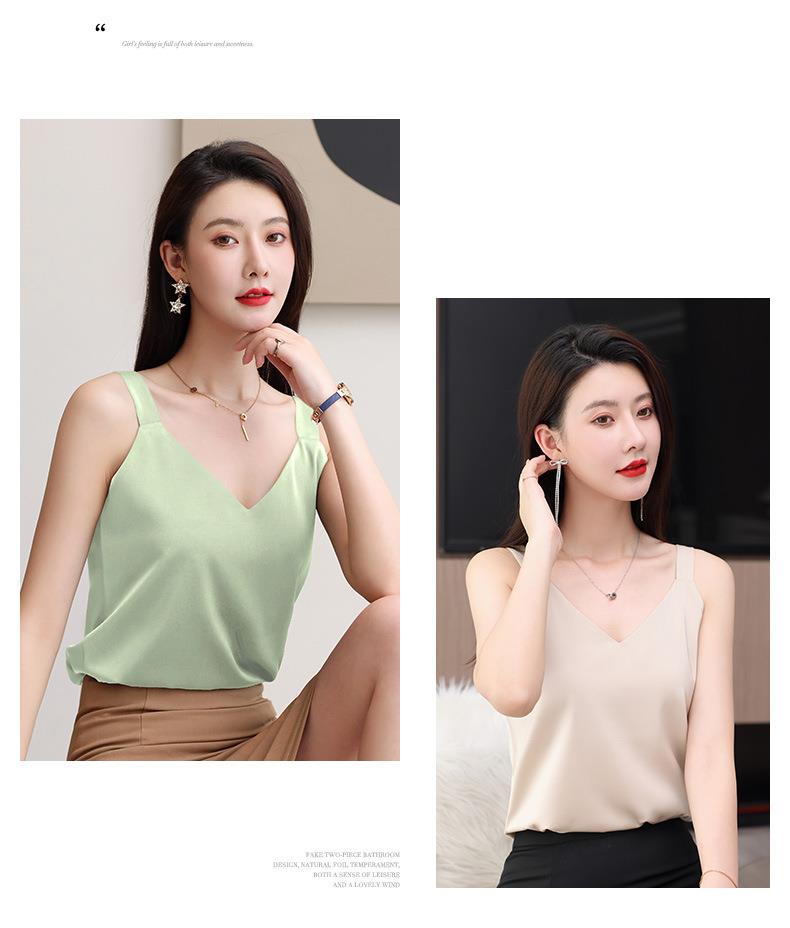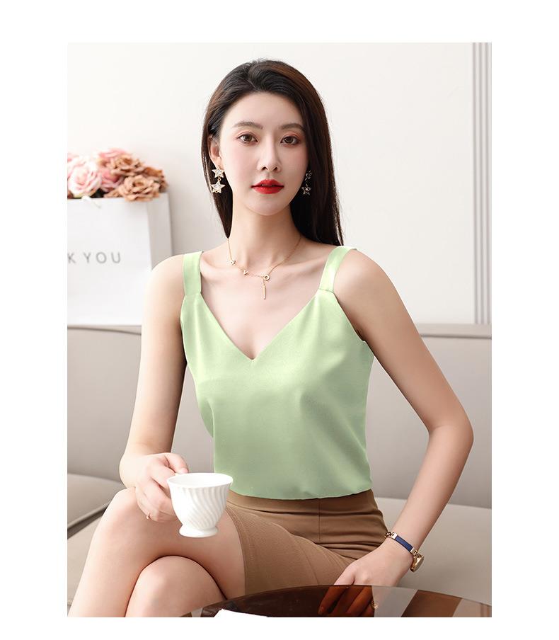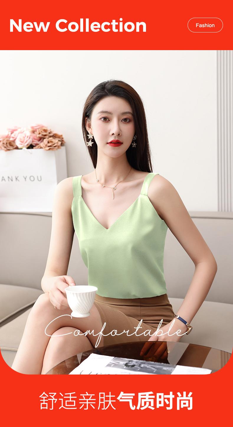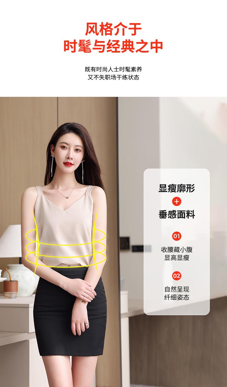娜璐多 V领吊带背心内搭时尚洋气时髦设计感小众搭配西装打底仿醋酸缎面