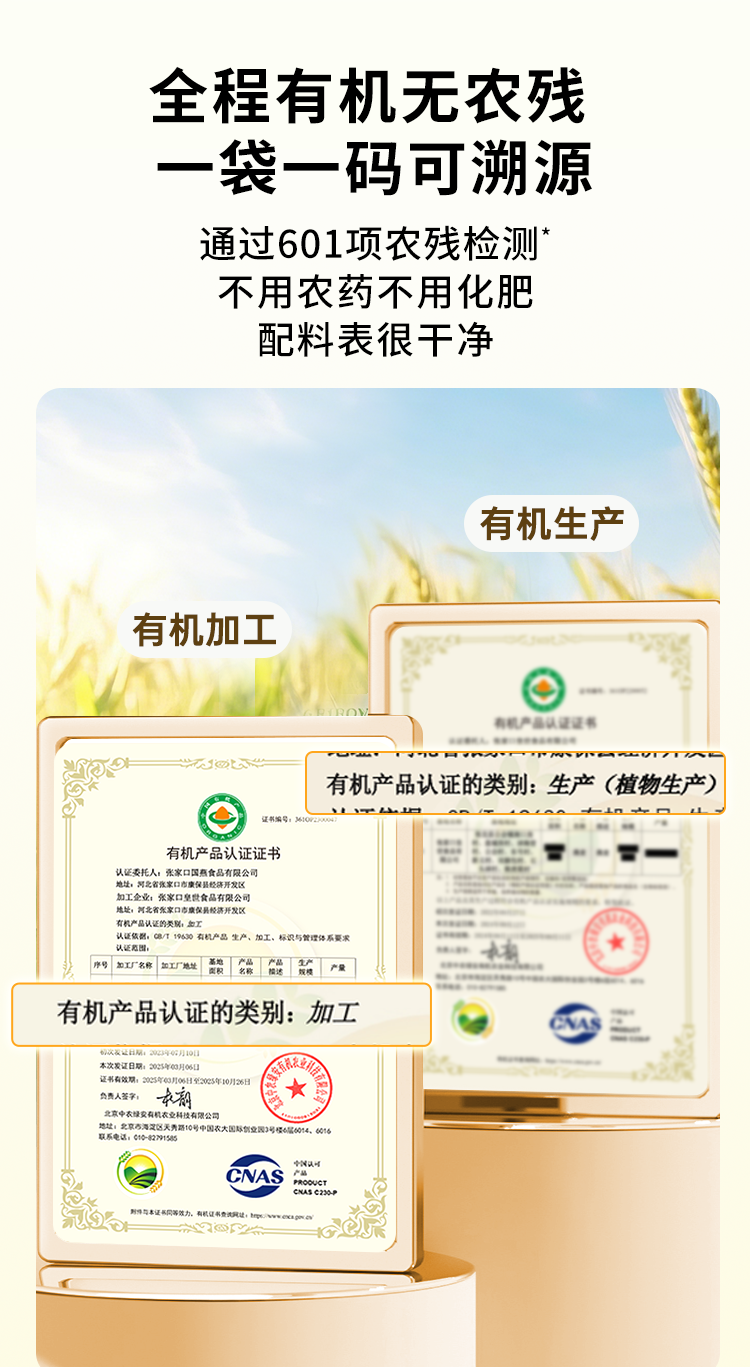 好麦多有机胚芽燕麦片900g桶装更大粒全谷物
