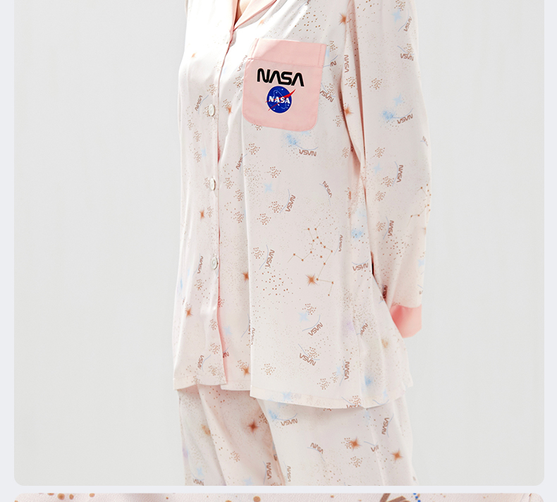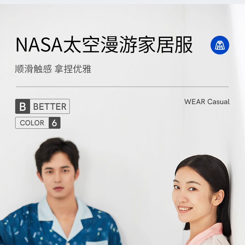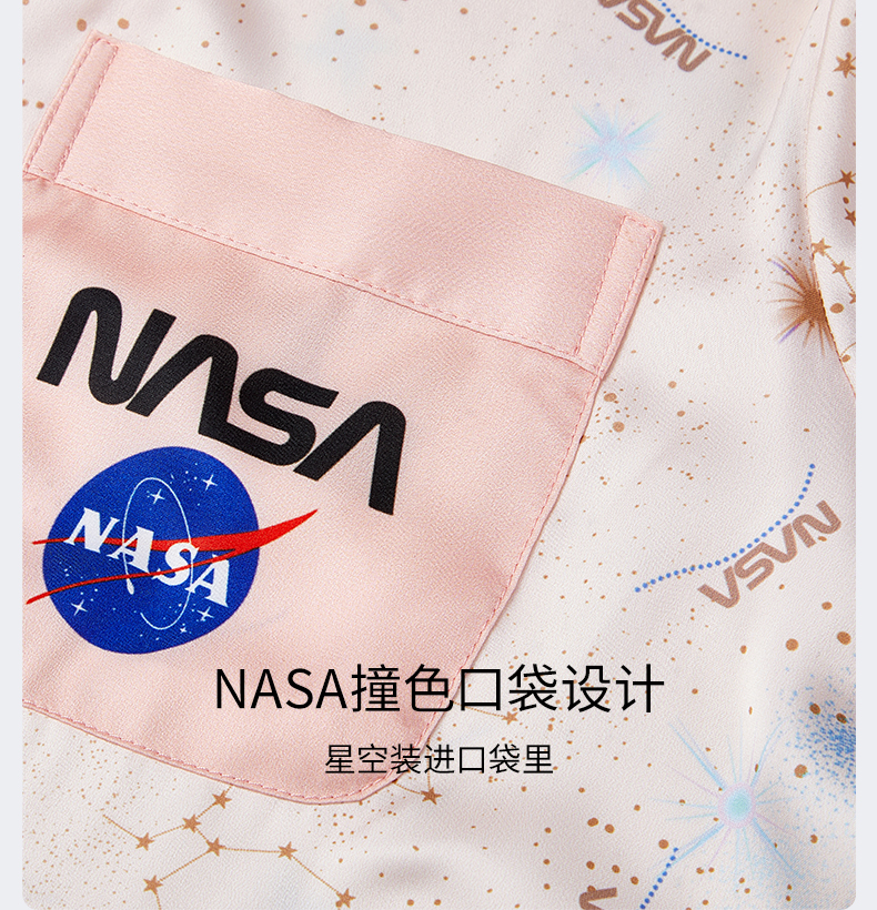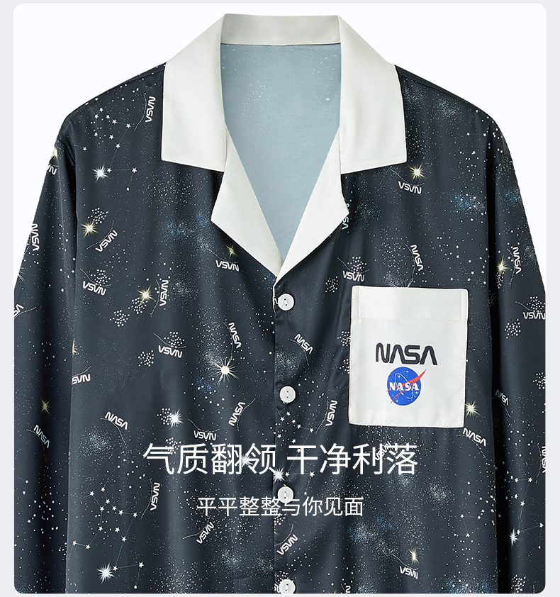 ² 断码清仓【完型NASA联名情侣款睡衣】5种颜色 弹力缎面仿真丝触感不易皱 HM02-CRMM-WXKJ