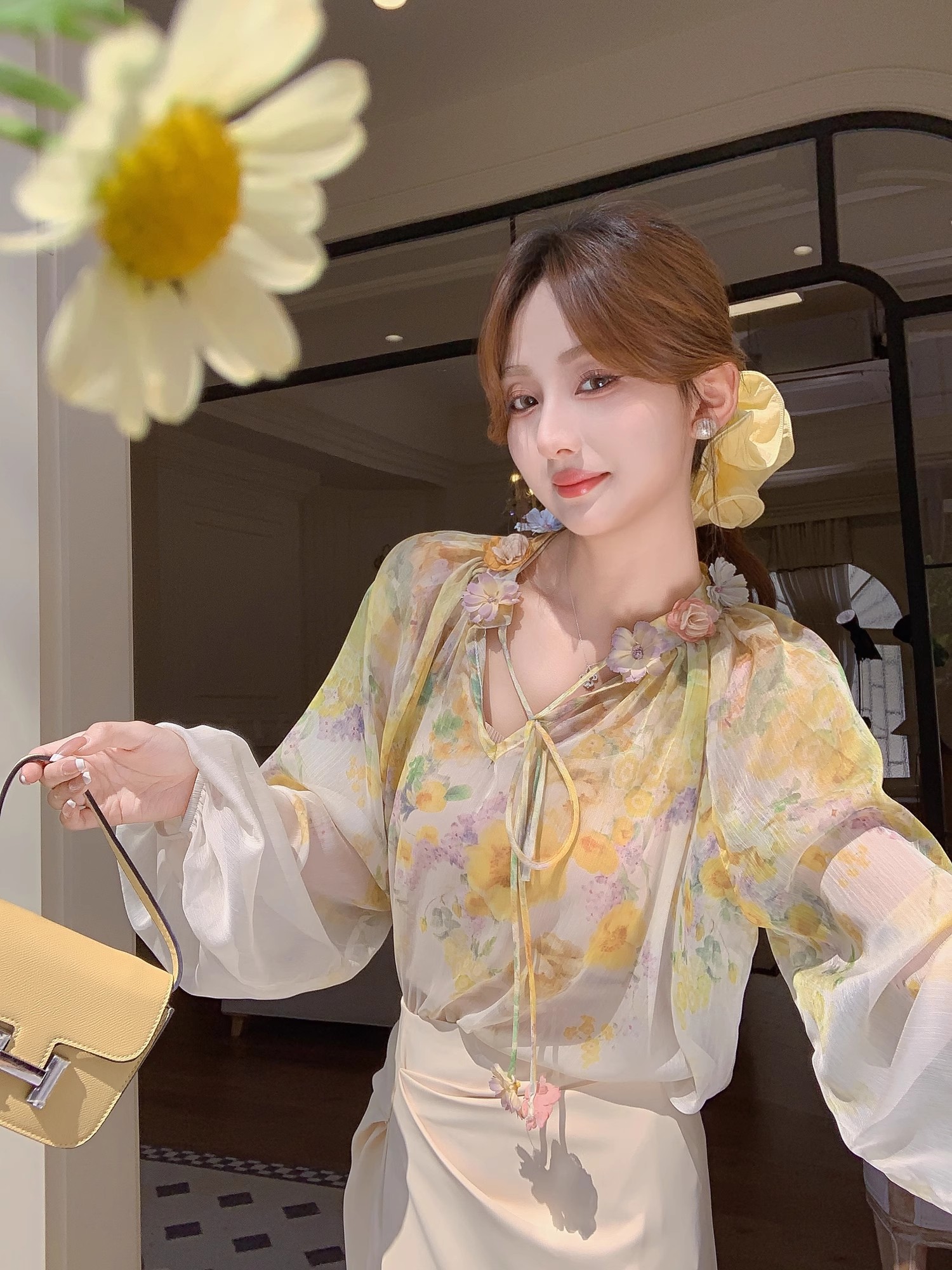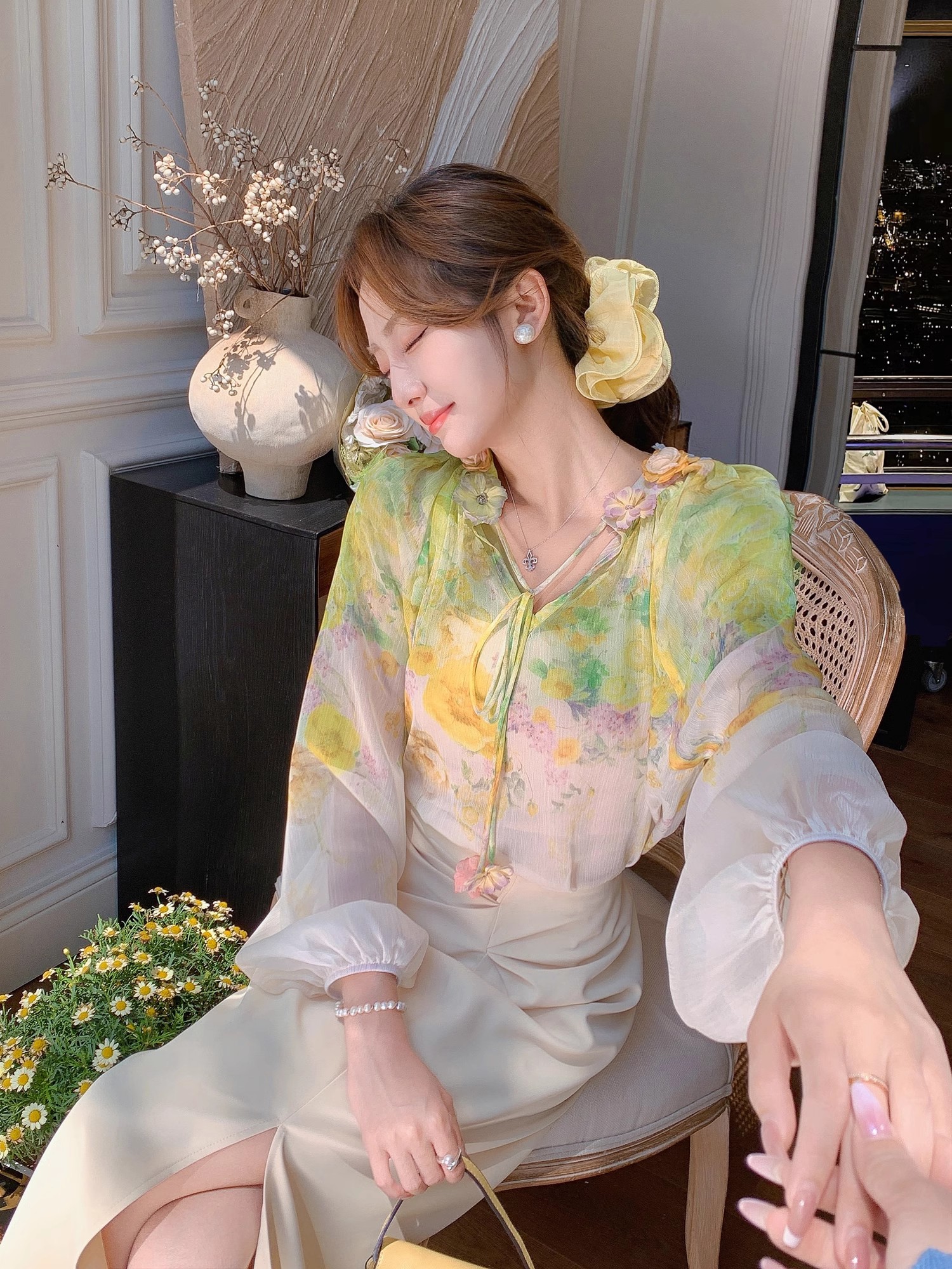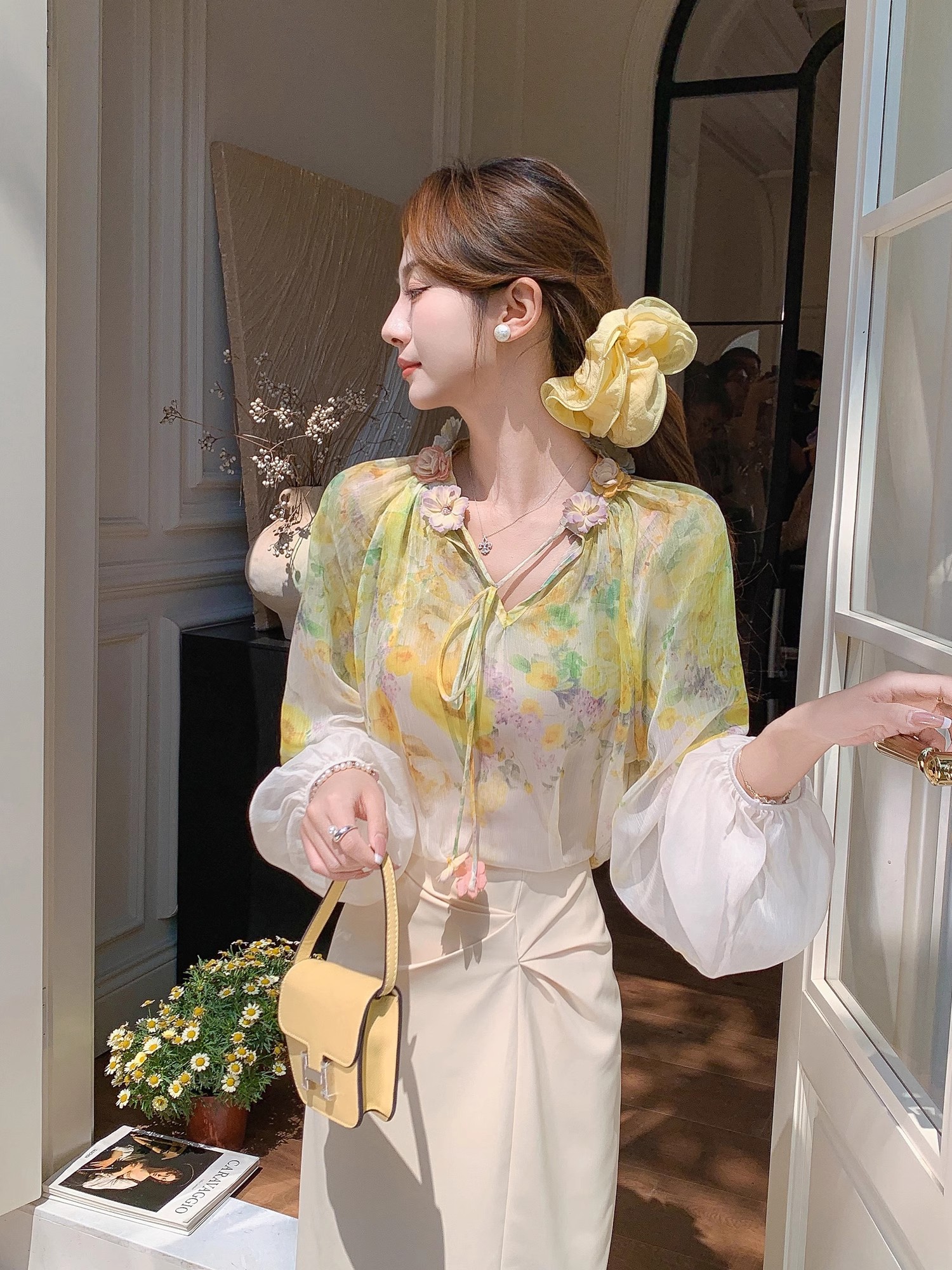 张心子【春日弥漫】轻薄防晒立体花朵显瘦碎花衬衫上衣 U2503048