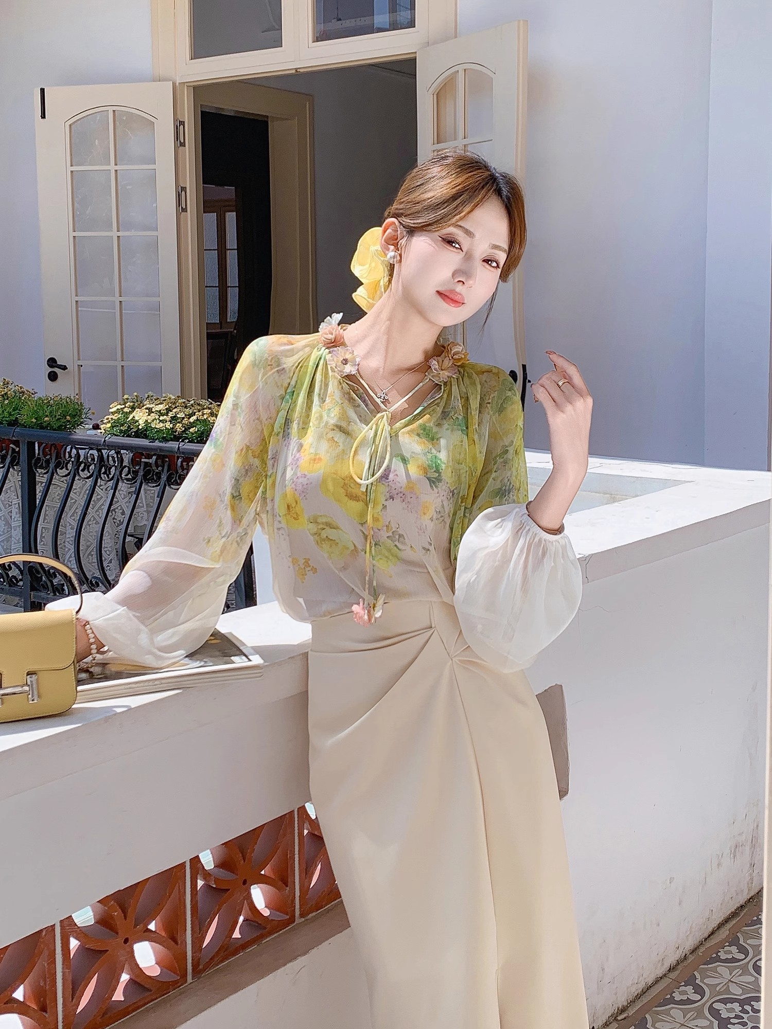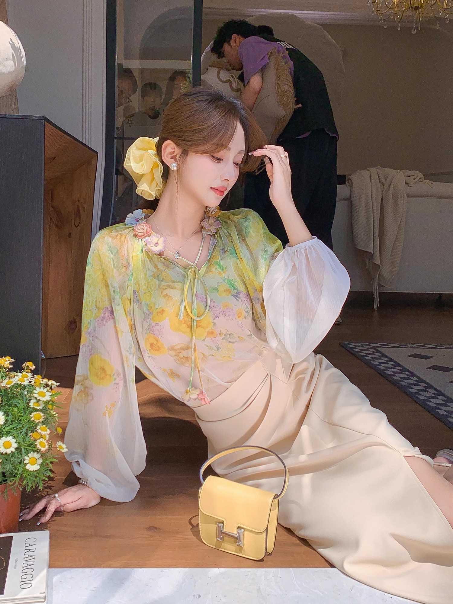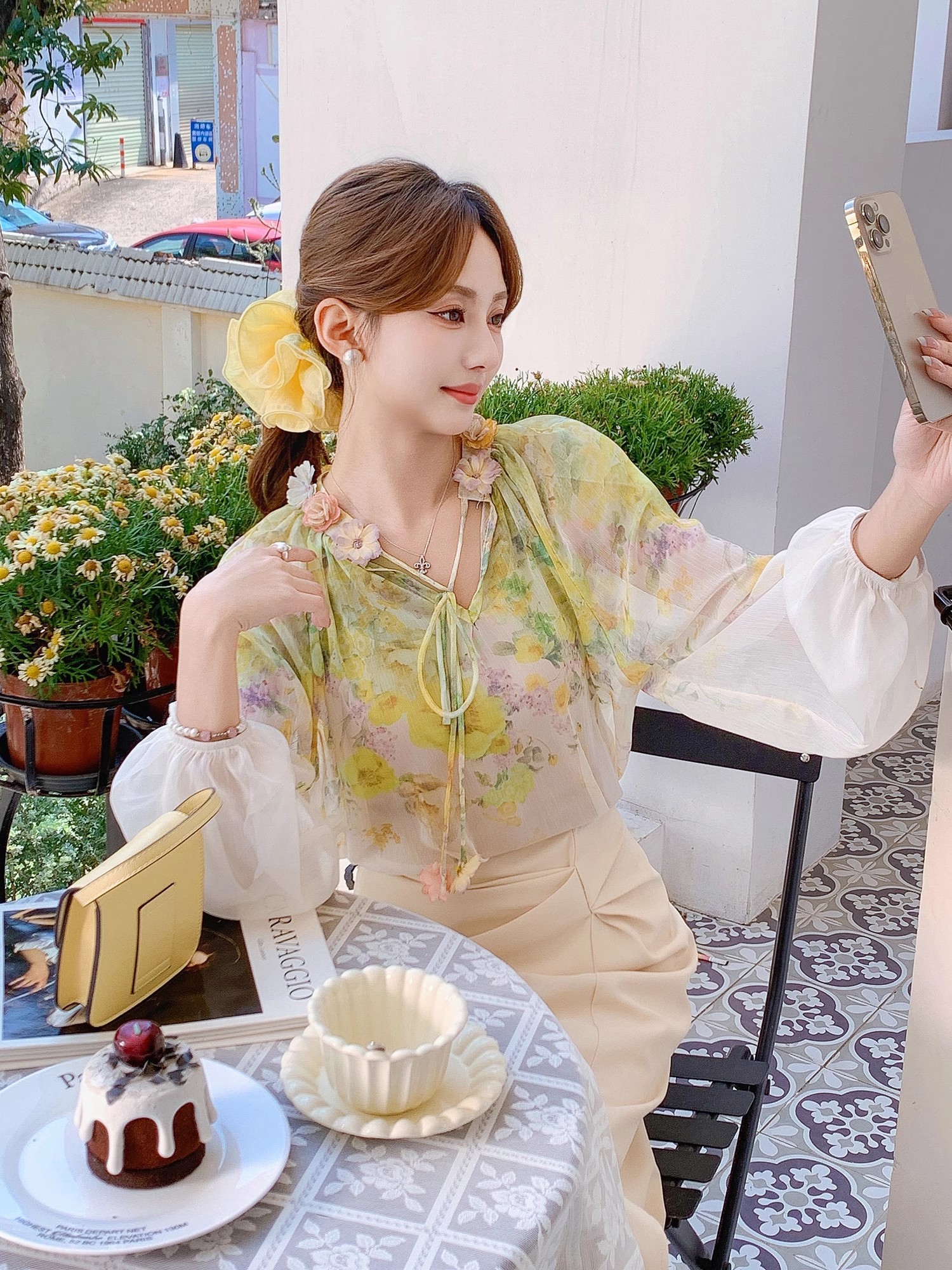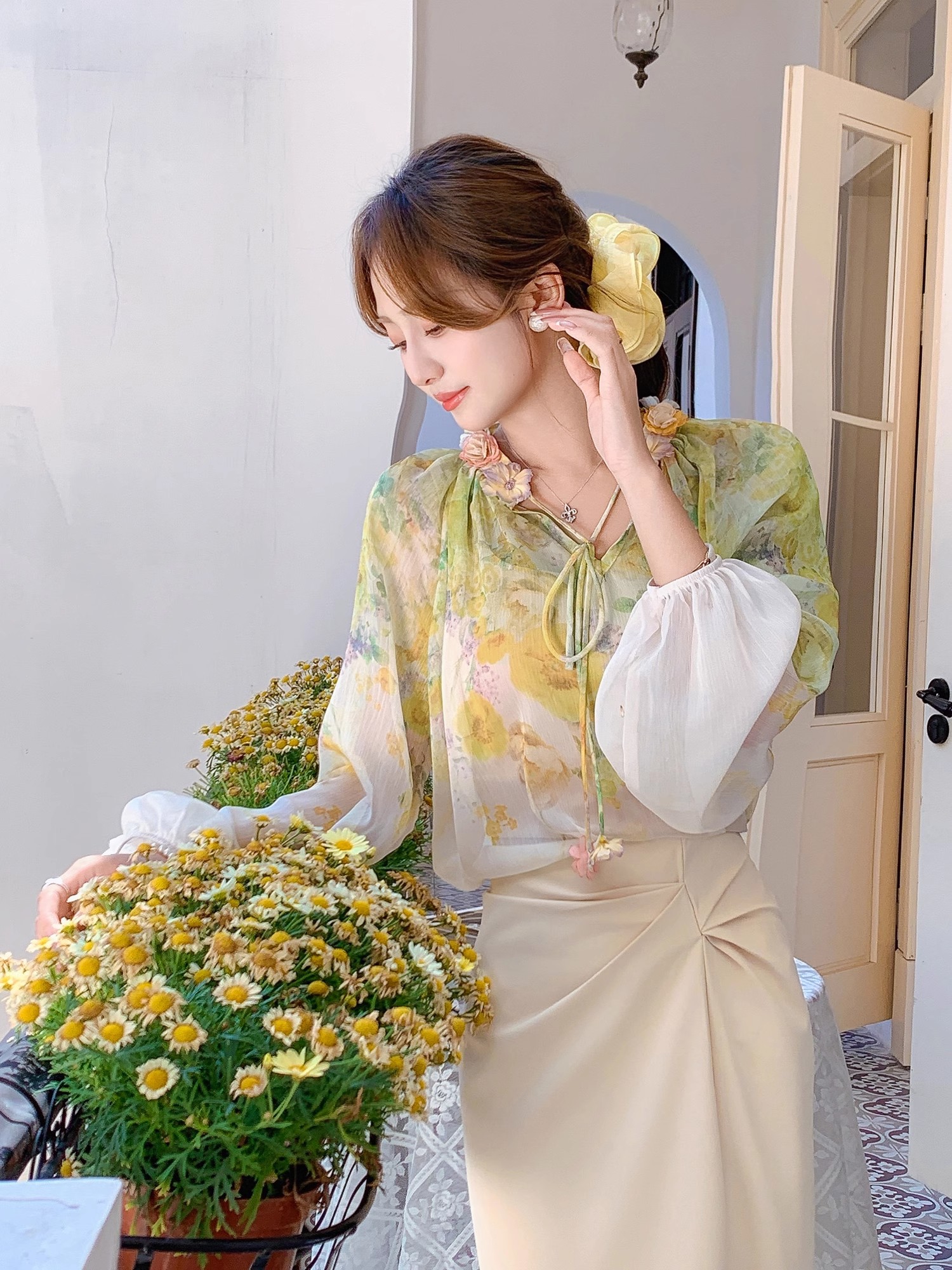 张心子【春日弥漫】轻薄防晒立体花朵显瘦碎花衬衫上衣 U2503048