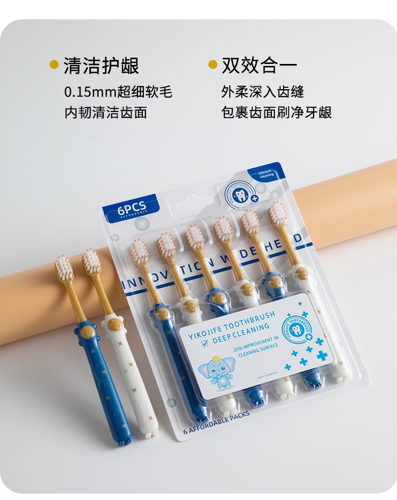 【山姆同款儿童牙刷6支装】软毛牙刷密丝柔护龈,贴合宝贝细窄口腔轻松深入后槽牙,儿童牙刷3-12岁牙刷家用清洁QQ
