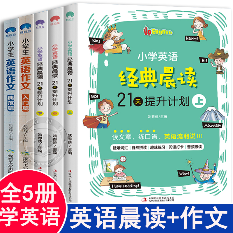 正版全套5册小学生英语经典晨读21天提升计划课堂笔记天天练二三四五六年级看图说话写话同步作文入门篇阅读专项训练学习辅导书籍