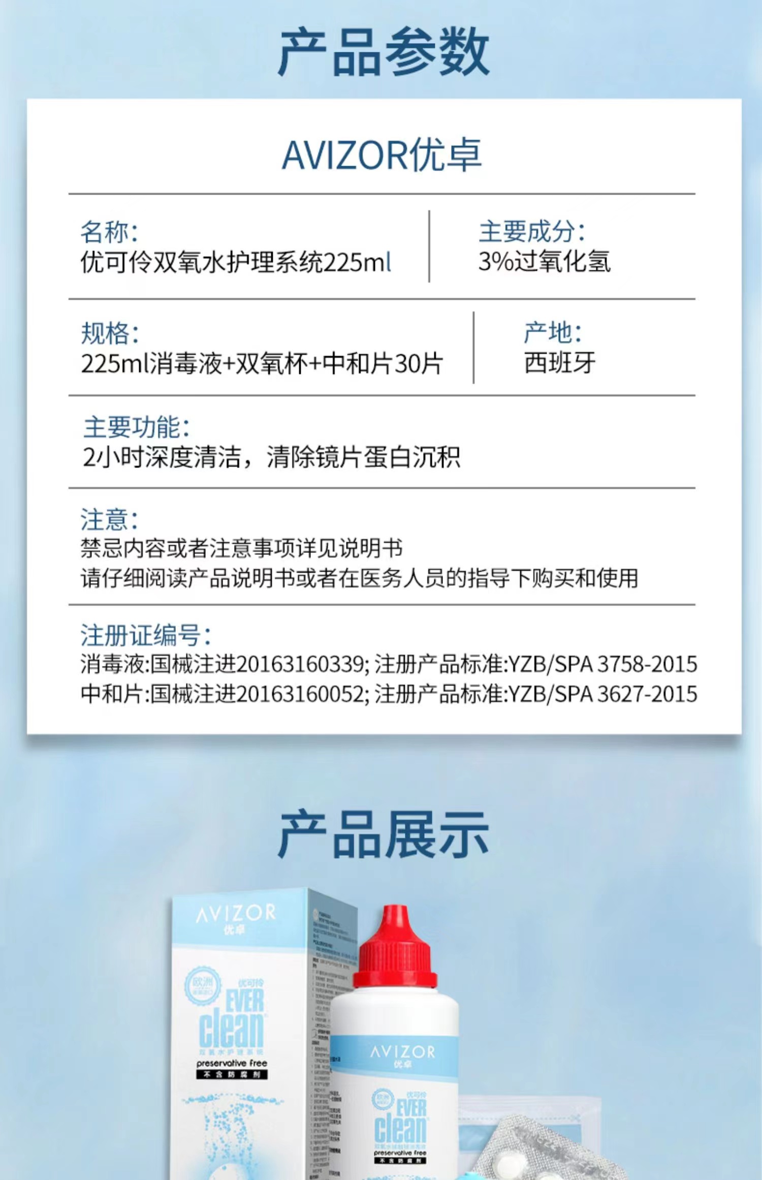 avizor优卓优可伶双氧水角膜塑形镜护理液225ml