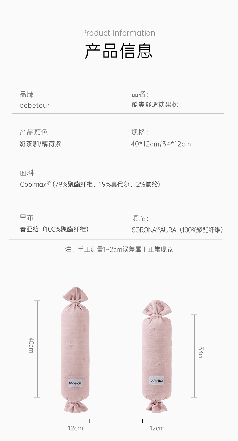 BEBETOUR婴儿酷爽舒适/安抚豆豆糖果枕