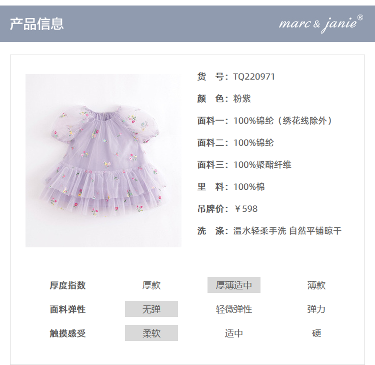 马克珍妮夏装新款 女童刺绣网纱短袖连衣裙 儿童A型蛋糕裙220971