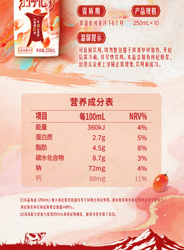 爵品红枸杞奶250ml×10盒