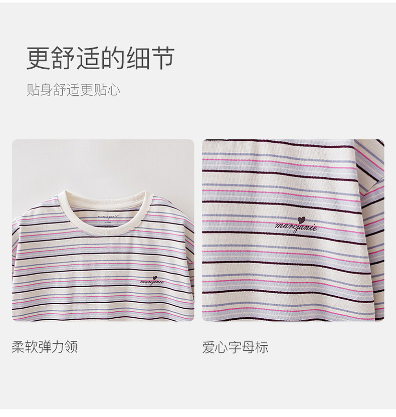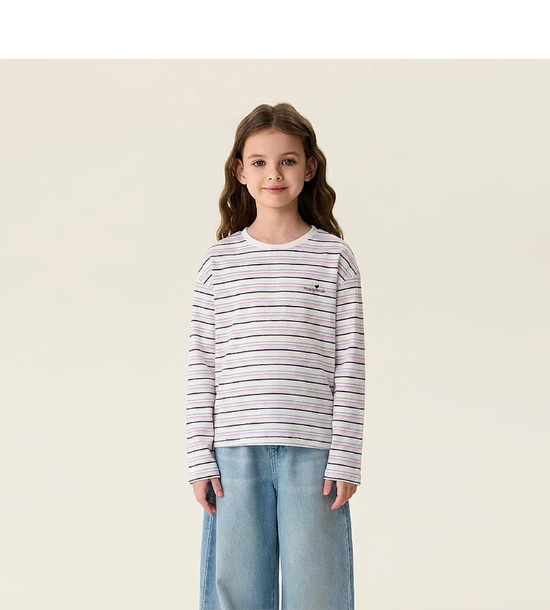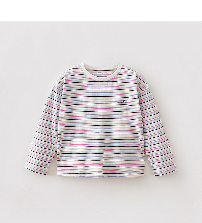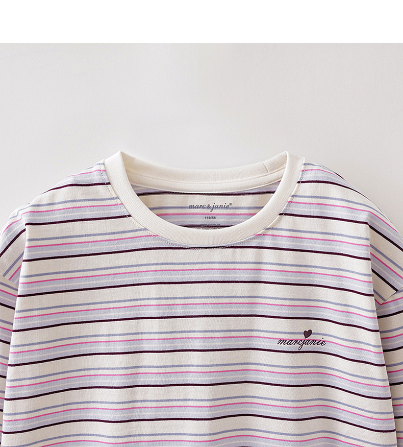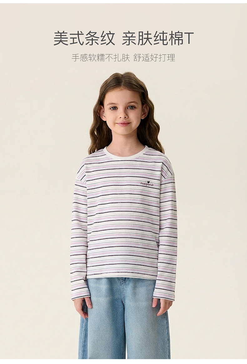 马克珍妮美式条纹女童亲肤纯棉T恤2026年春装新款560182
