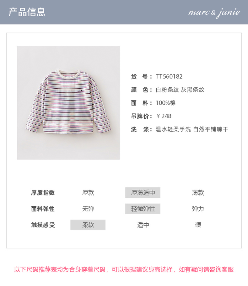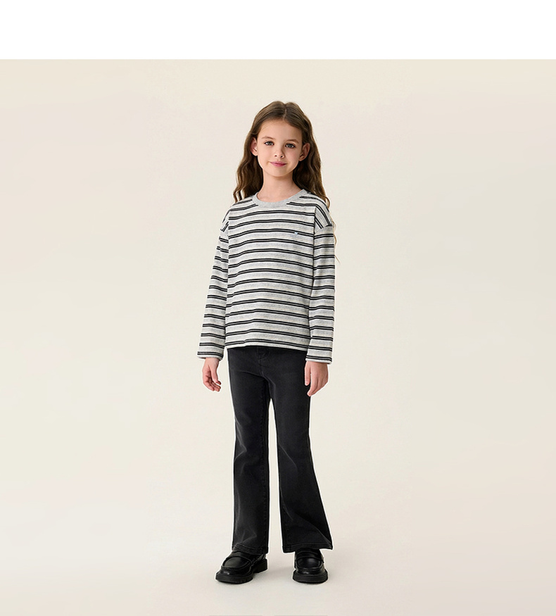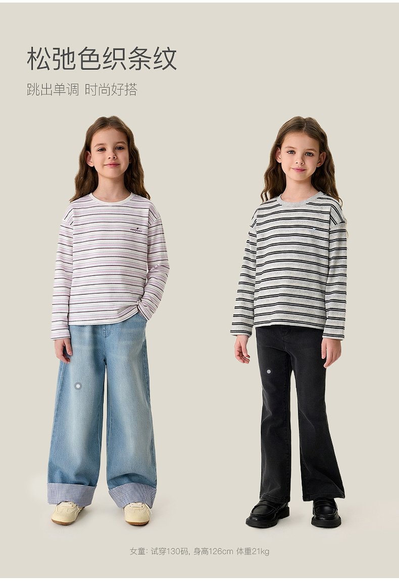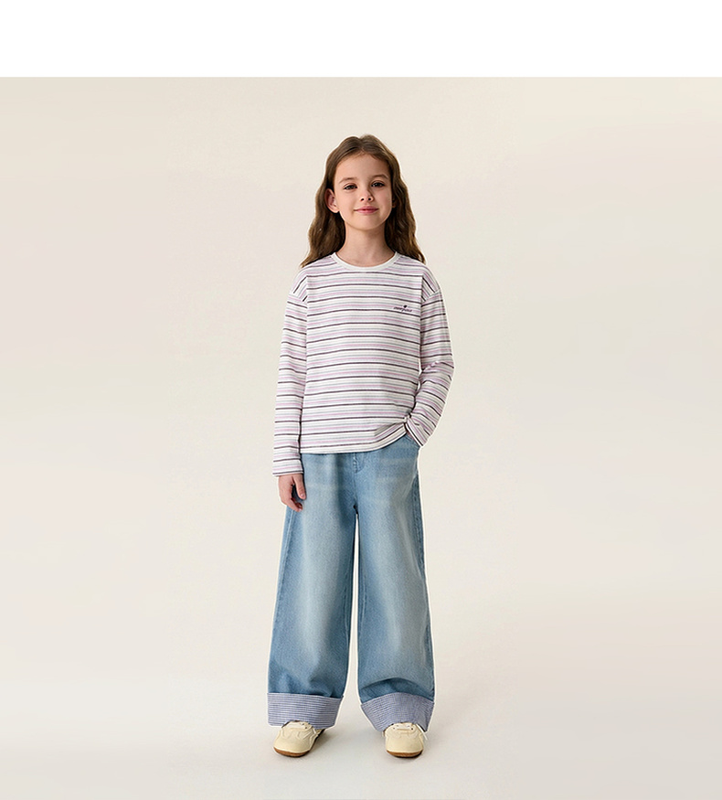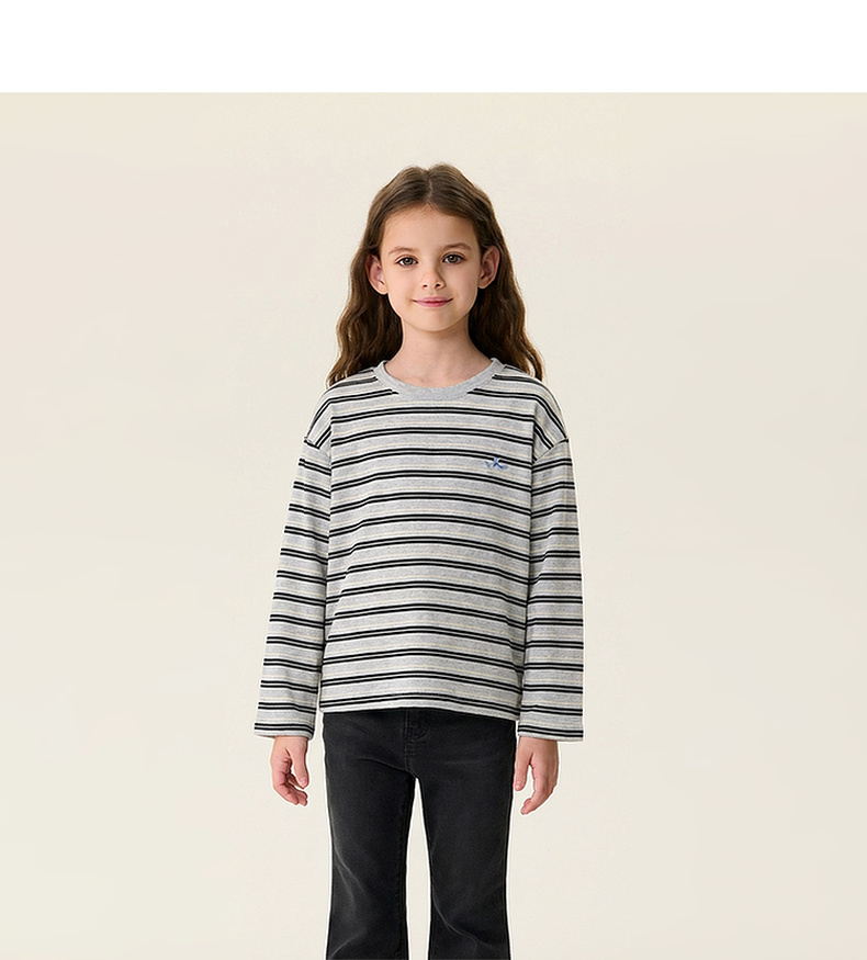马克珍妮美式条纹女童亲肤纯棉T恤2026年春装新款560182