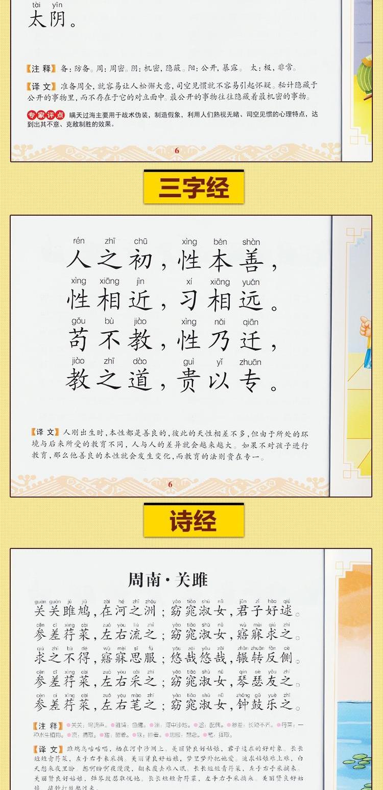 全套10本 3-6岁幼儿儿童国学早教启蒙经典诵读本彩图注音版百家姓成语 弟子规 笠翁对韵 论语 千字文 三十六计 三字经诗经唐诗书籍