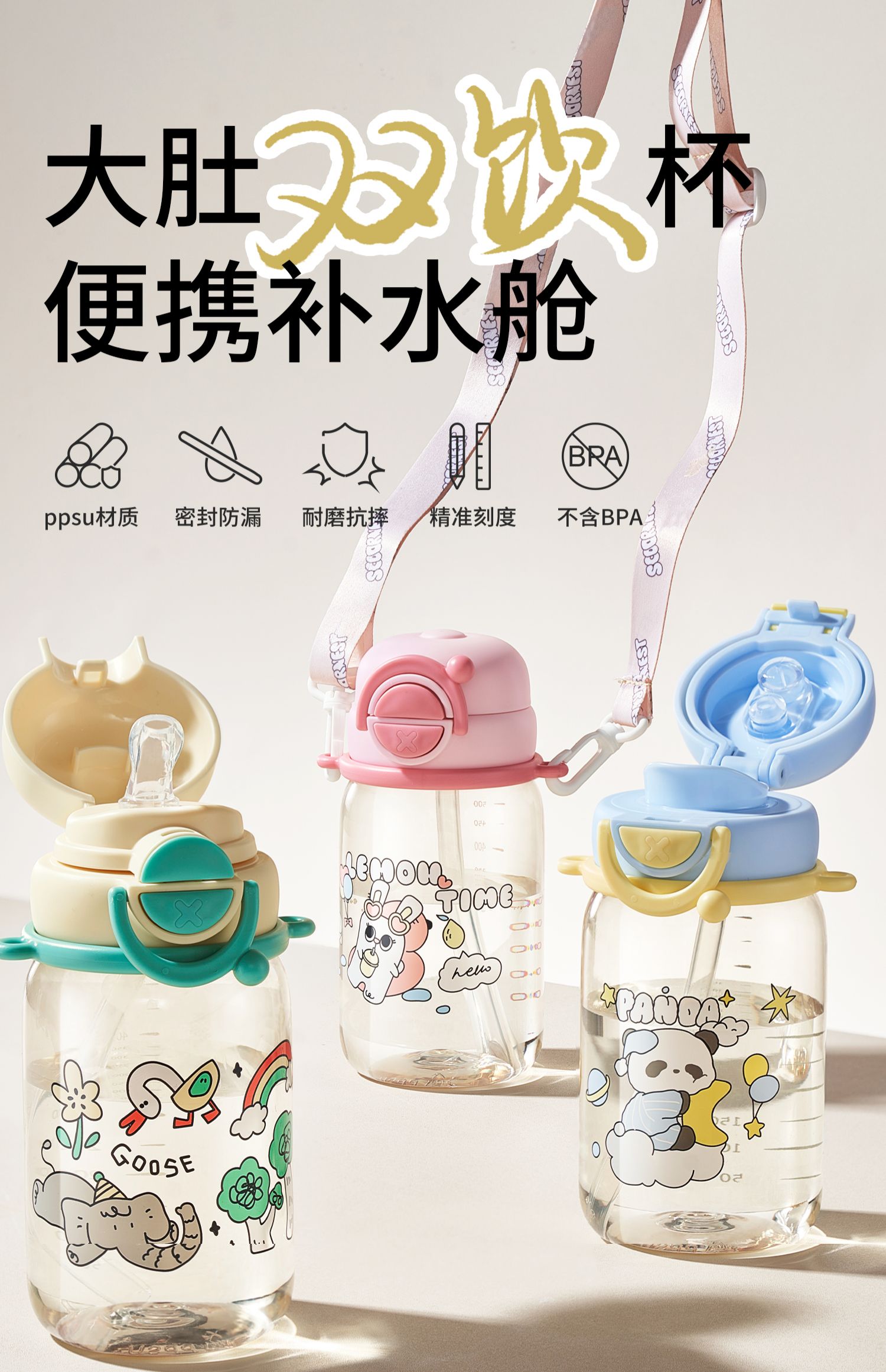 科巢儿童水杯吸管杯宝宝喝水杯直饮杯饮水壶防摔幼儿园户外出便携