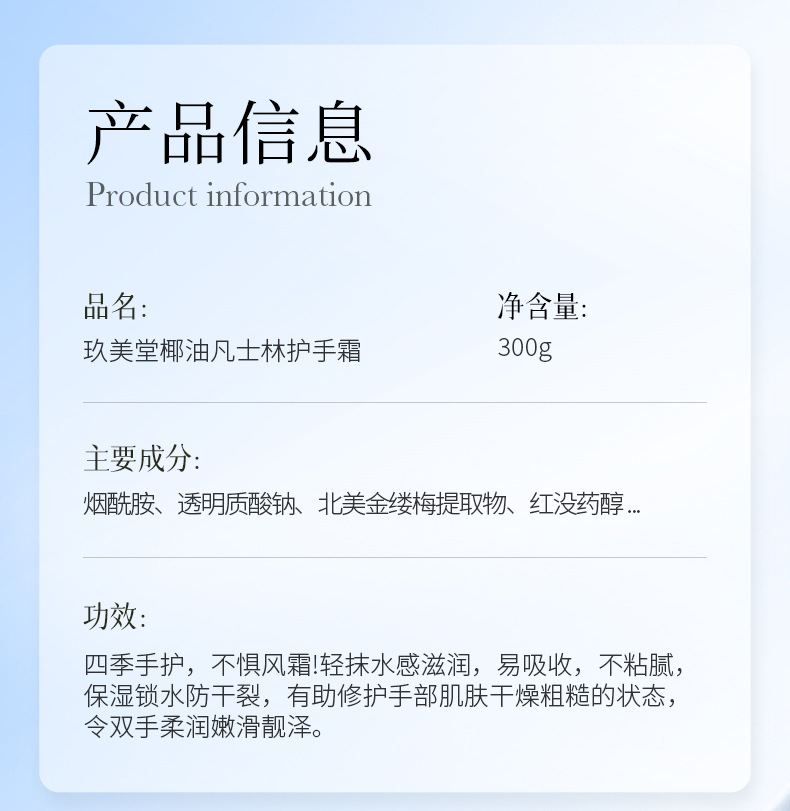 「9.9到手!300g大容量」JOLYUM玖美堂椰油凡士林护手霜 补水滋润保湿大容量手霜秋冬美容护肤品