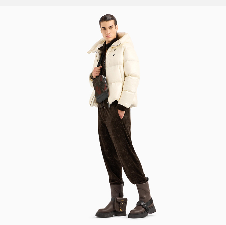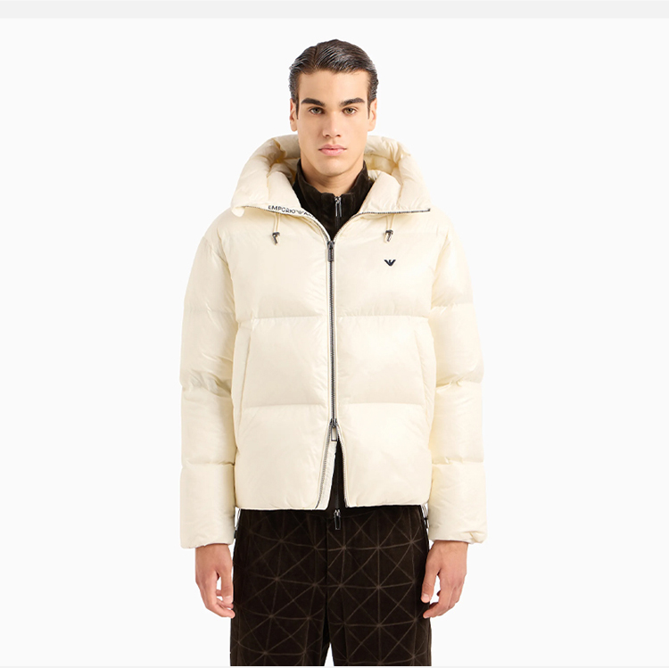 EMPORIO ARMANI 阿玛尼 男士防水绗缝尼龙连帽羽绒服 米色 6R1B97 1NKZZ 0128