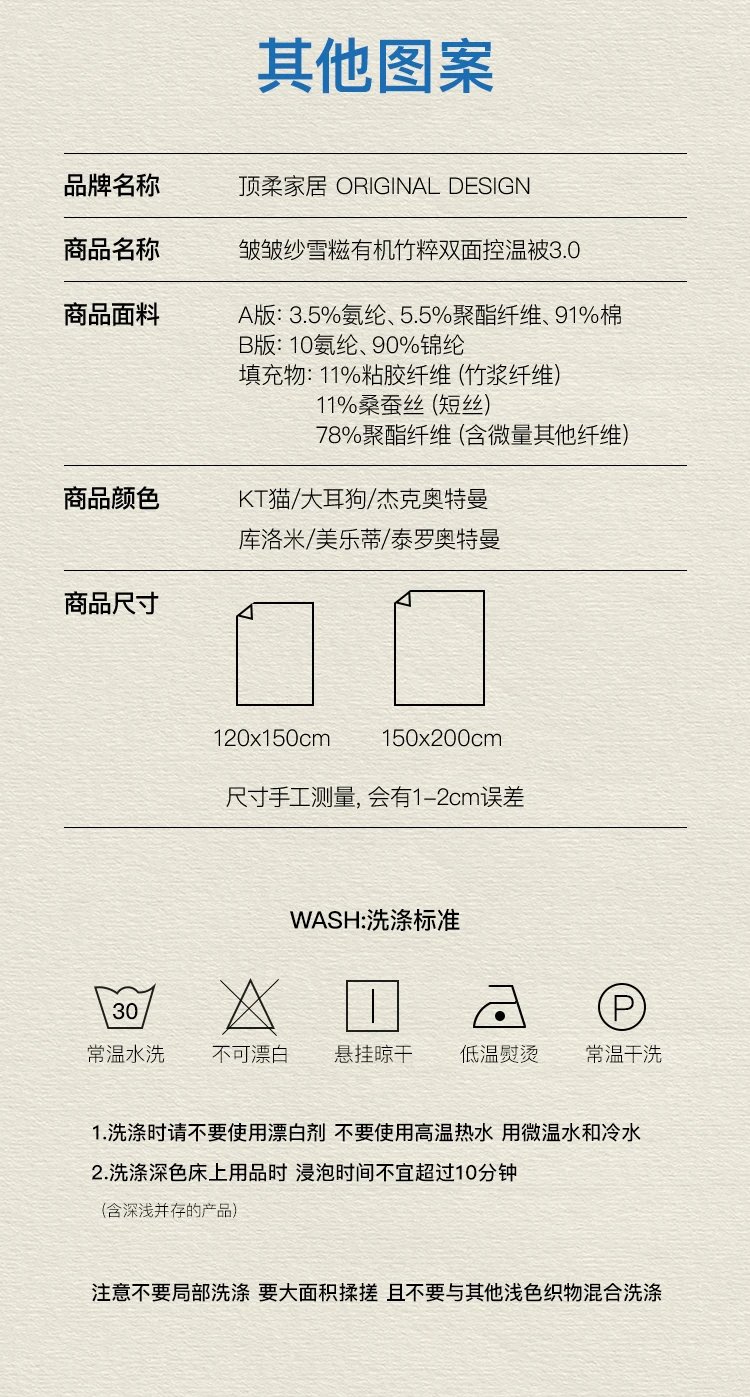 【品名】皱皱纱雪糍双面控温被奥特曼/三丽鸥IP系列2.0