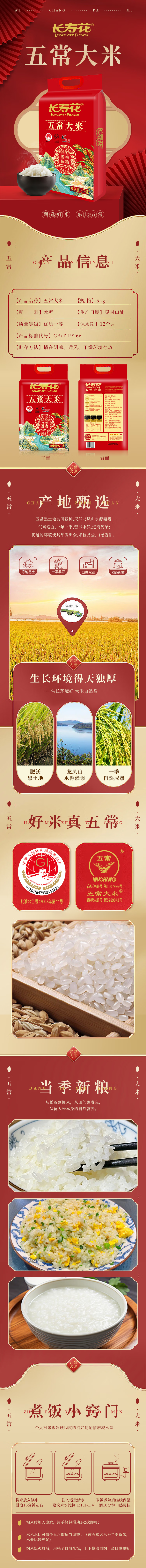 长寿花五常大米当季新粮大米稻香软粘 5kg*1袋