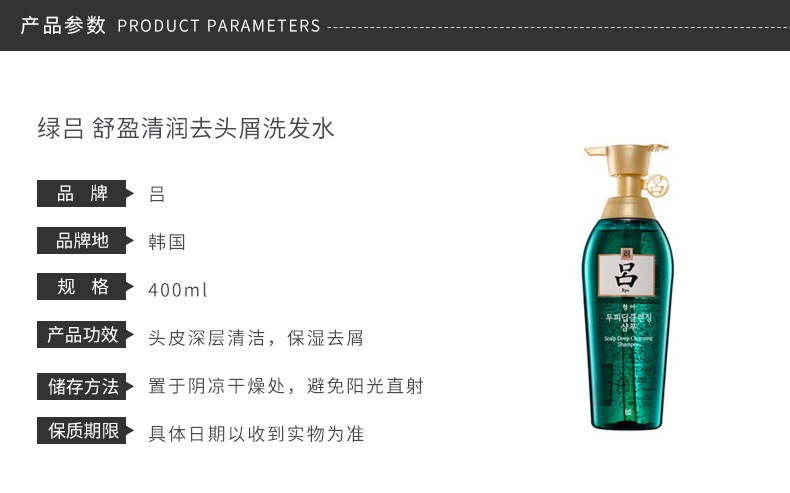 RYOE/吕 绿吕 舒盈清润去头屑洗发水 400MLJPY带授权招加盟代理