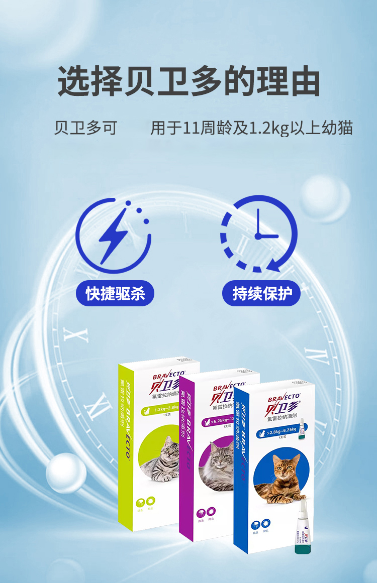 贝卫多猫驱虫药体外滴剂驱除寄生虫蜱虫氟雷拉纳滴剂猫咪用