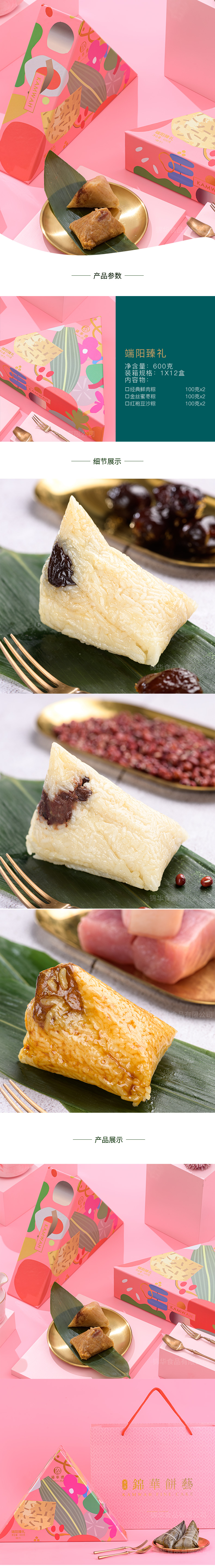 【限时拼团】【臻选出粽】KAMWAH锦华礼端阳臻礼 鲜肉粽子蜜枣豆沙甜粽新鲜手工盒装600g