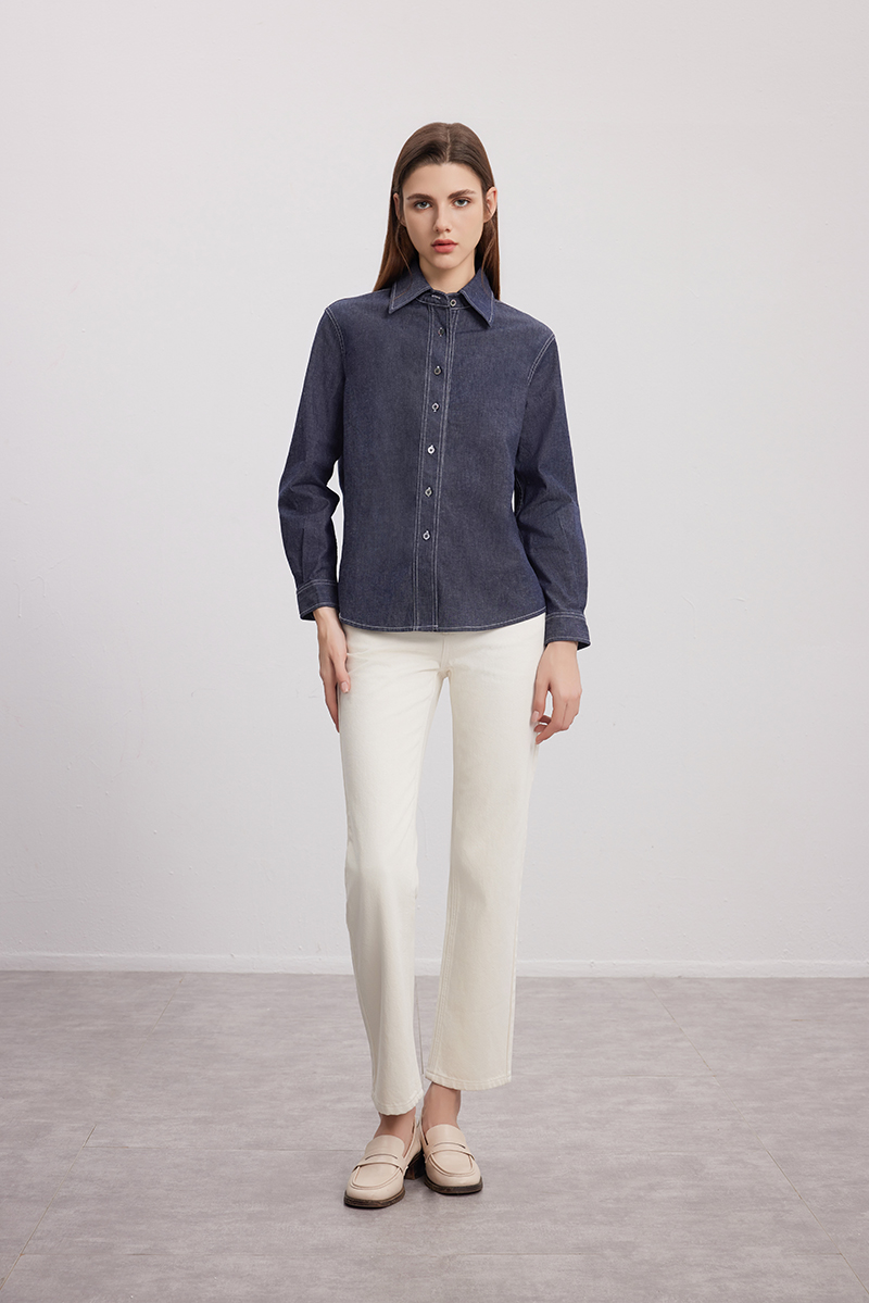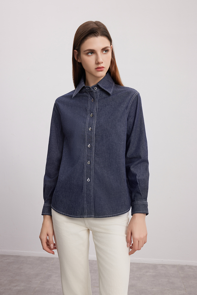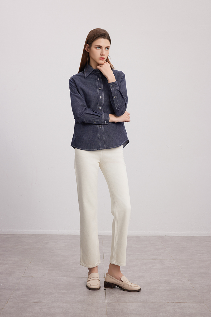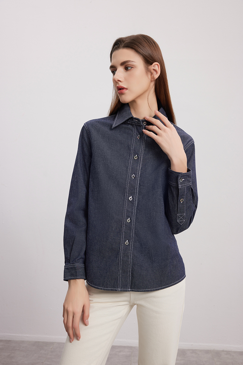 【棉质牛仔衬衫】24年秋季新款女士时尚牛仔蓝衬衫时尚小外套
