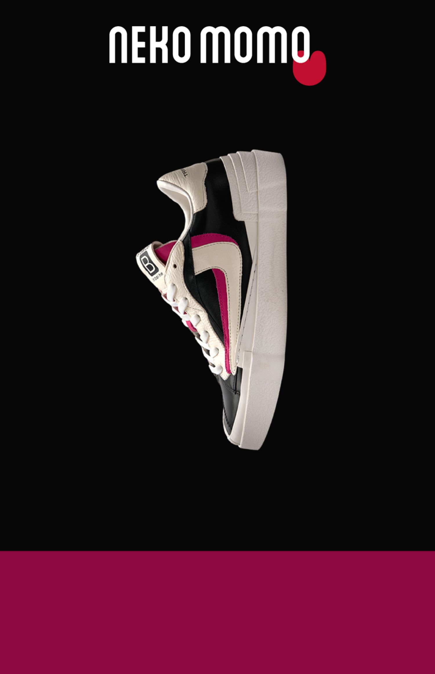 nekomomo2022年秋季新款商场同款头层牛皮系带时尚平底高帮板鞋女
