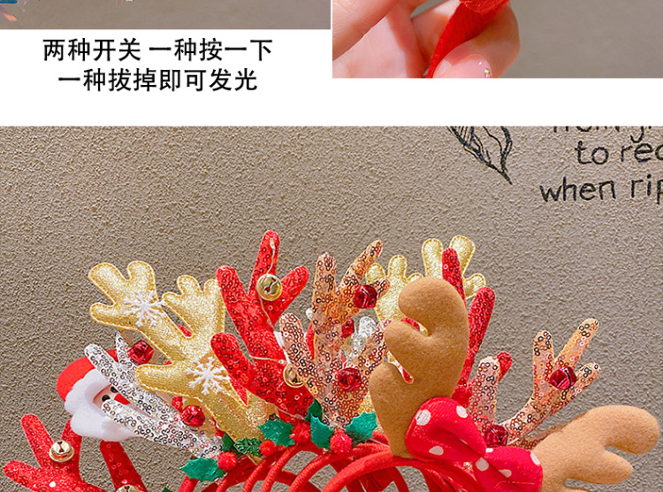 【圣诞发饰】-儿童女童圣诞节礼物宝宝头箍发光发卡女搞怪