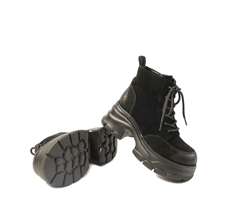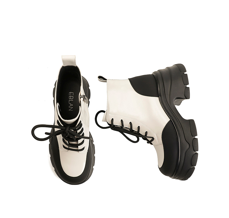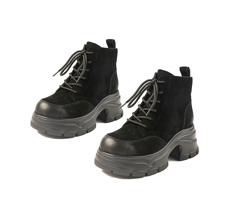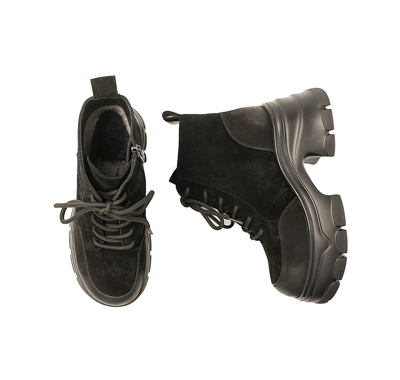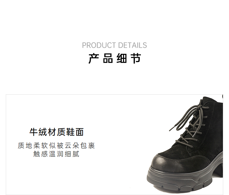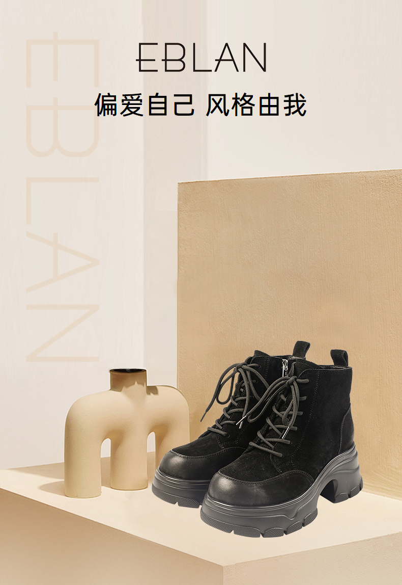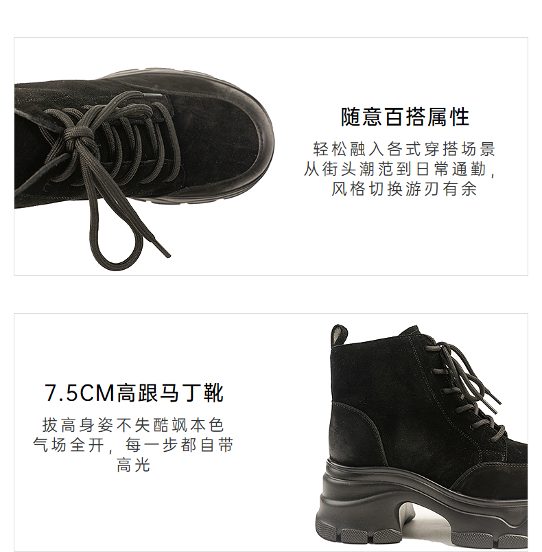 伊伴冬季牛绒百搭高跟马丁靴B25609702