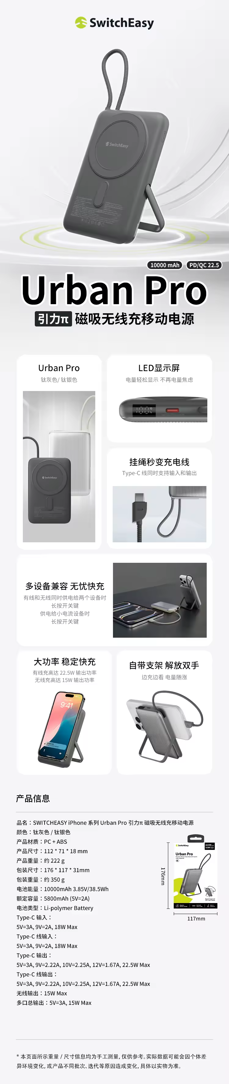 SWITCHEASY Urban Pro 引力π10000mAh 磁吸无线充移动电源