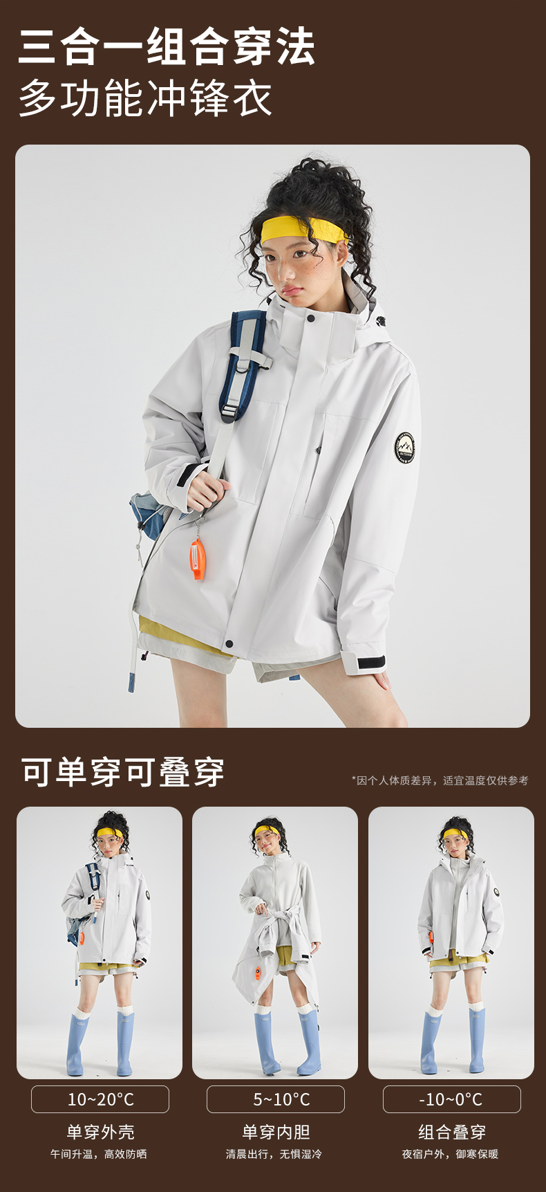 LUCKY DEER幸运鹿情侣款山系保暖防泼水透气三合一户外风衣