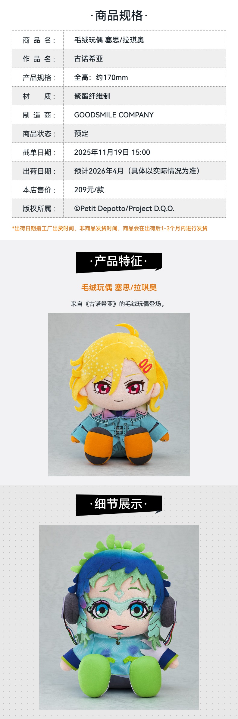 【GSC预售定金】毛绒玩偶 塞思/拉琪奥 古诺希亚 手办模玩