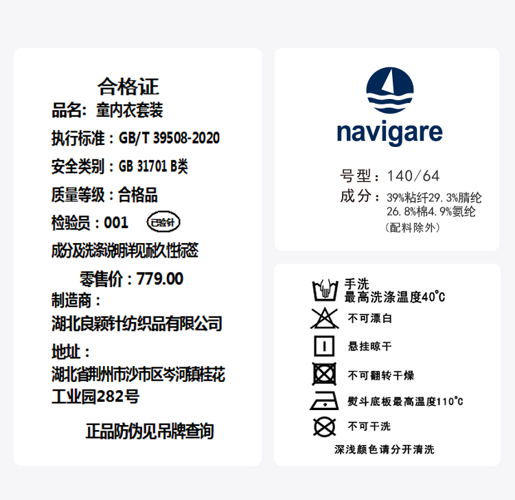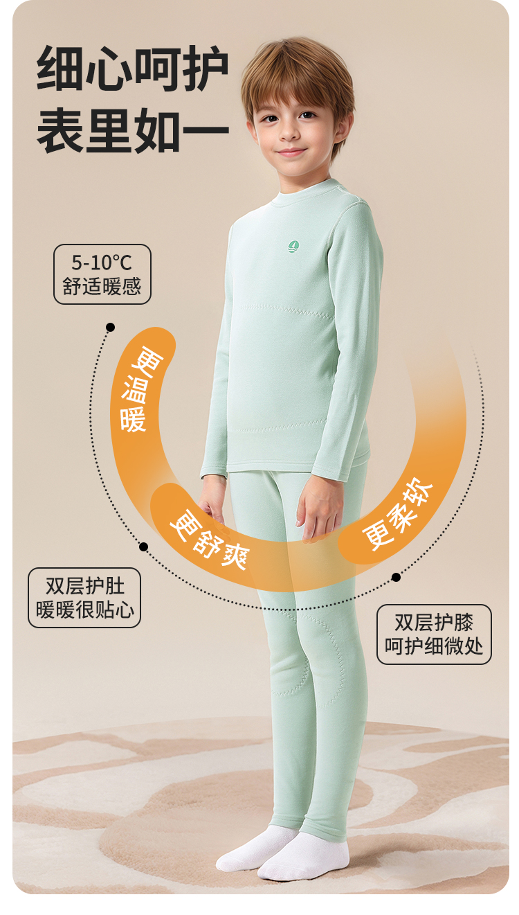【纳维凯尔】【护膝护肚】【120-165】Navigare小帆船男童冬款德绒保暖内衣套装