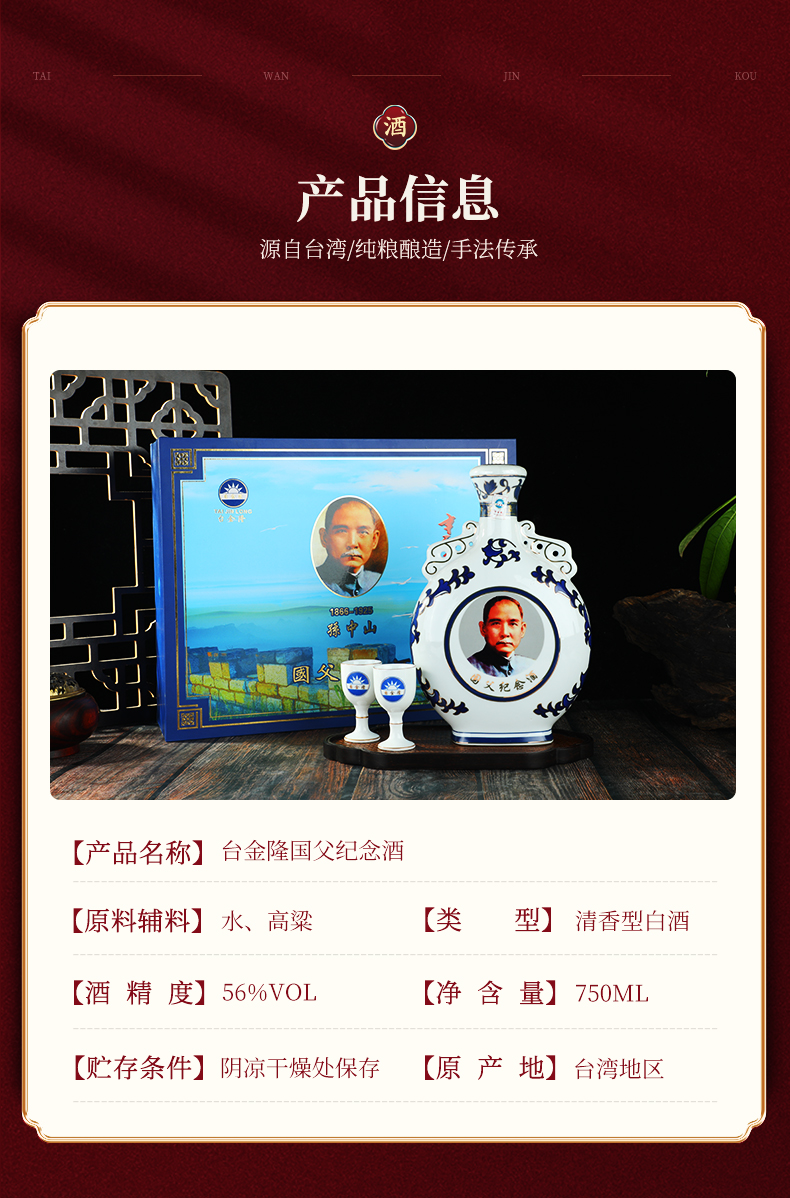 自营(耀金台)-台金隆国父56°纪念酒750ml/瓶