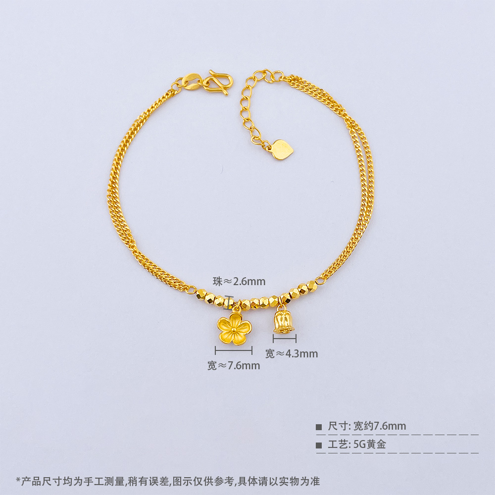 【限时克减150元】足金999 #招桃花 5G黄金双层调节手链桃花樱花铃兰花间转运蹦迪珠花卉手链(AG5GSL00136)(预售产品下单后不退款不退货不换货不补差价)