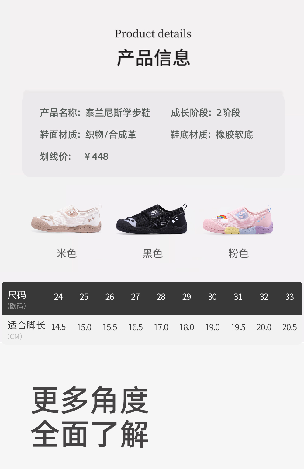 泰兰尼斯学步鞋男宝宝秋季新款童鞋机能鞋女童鞋子防滑软底面包鞋T01T4D5518