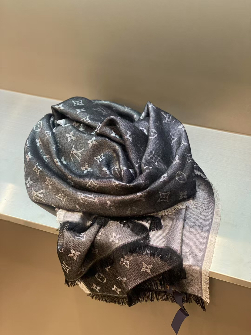 1019-3极限特惠 马户迪拜系列 桑蚕丝山羊绒混纺 星光熠熠 黑灰/银灰双面 长款围巾
