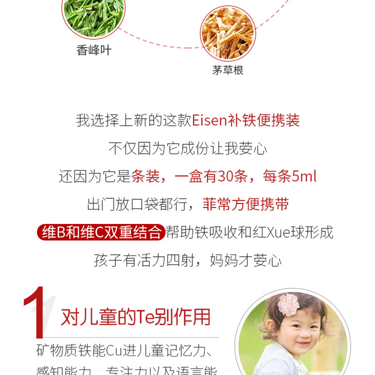 【保税】德国Huebner Eisen/郝柏娜 铁元补铁补血口服液便携式儿童铁元30袋*5ml