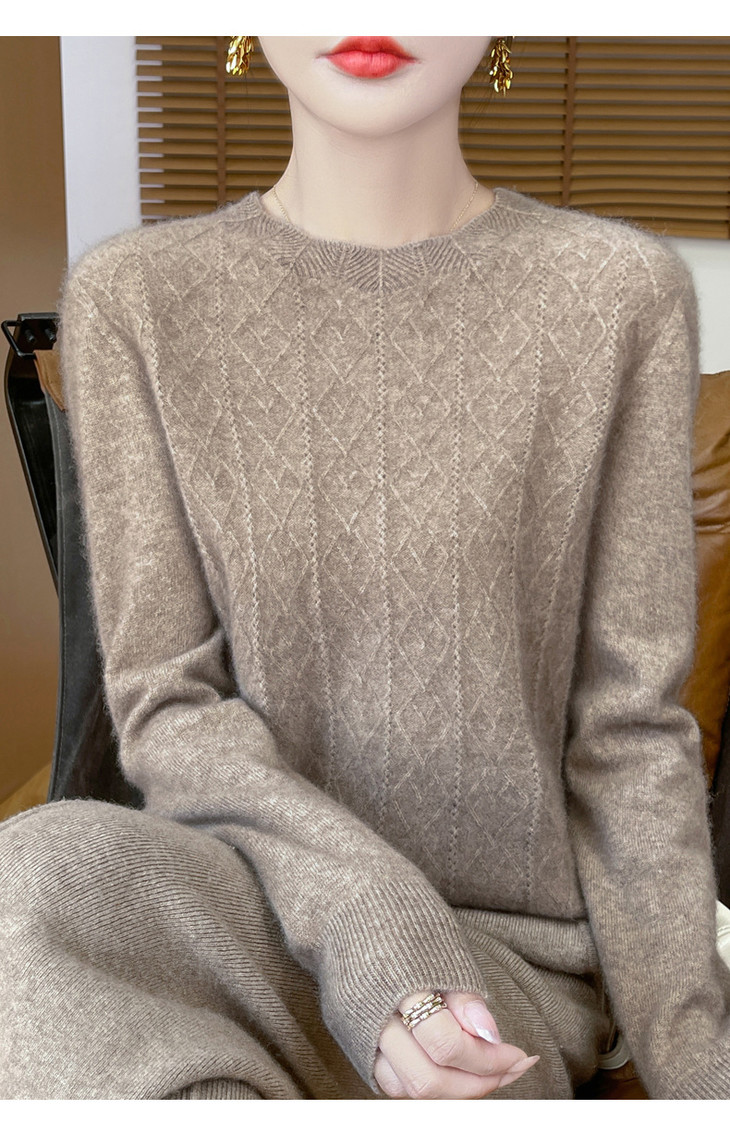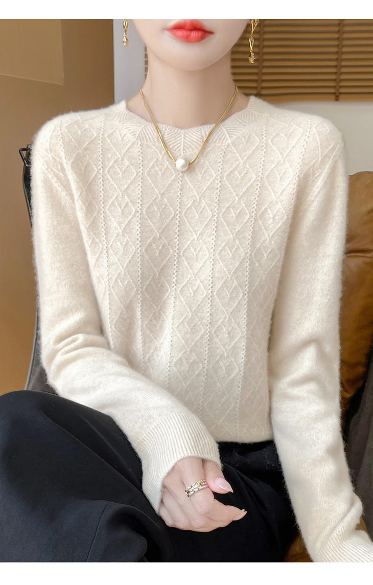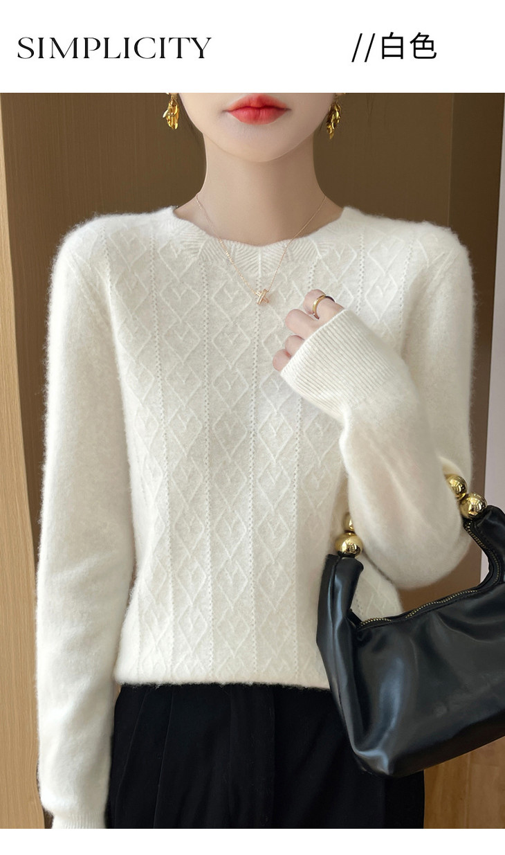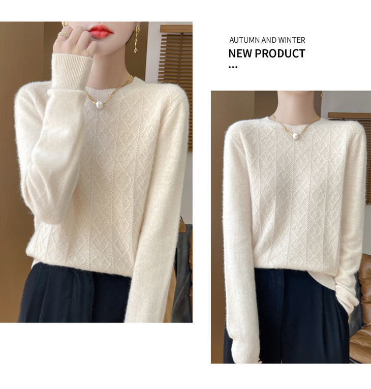 2024新款无缝一线羊毛衫圆领花型套头羊毛针织上衣NG-920