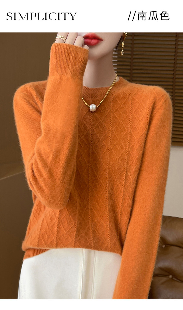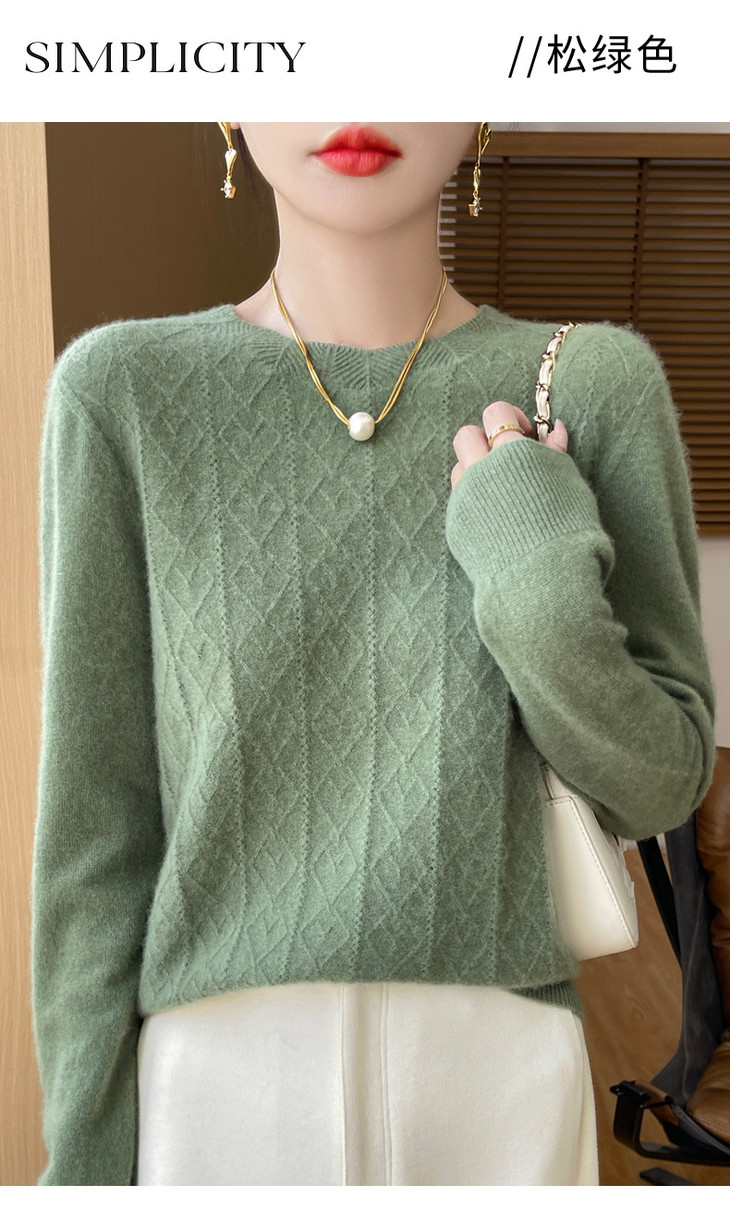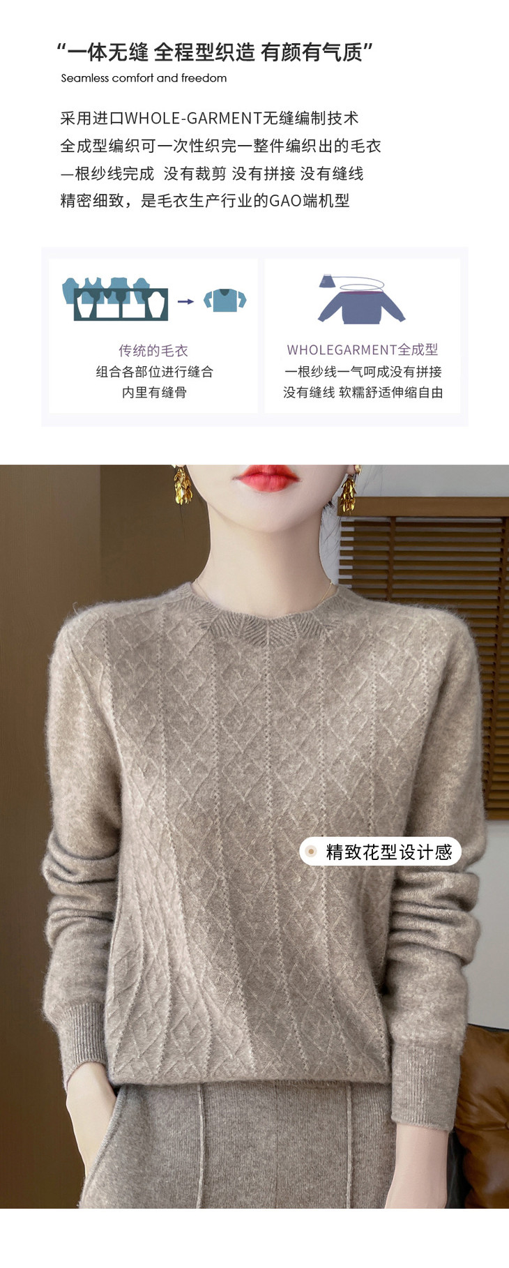 2024新款无缝一线羊毛衫圆领花型套头羊毛针织上衣NG-920 商品图0