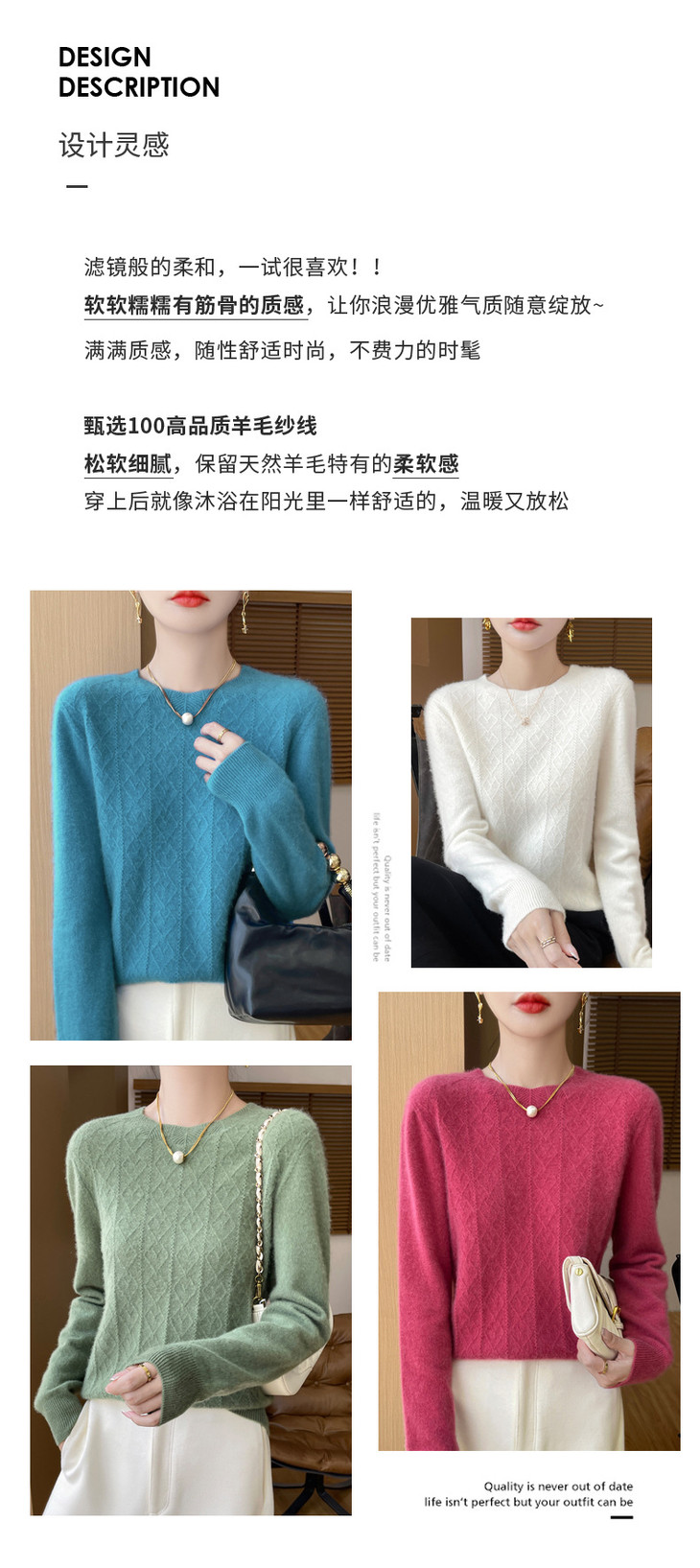 2024新款无缝一线羊毛衫圆领花型套头羊毛针织上衣NG-920 商品图3